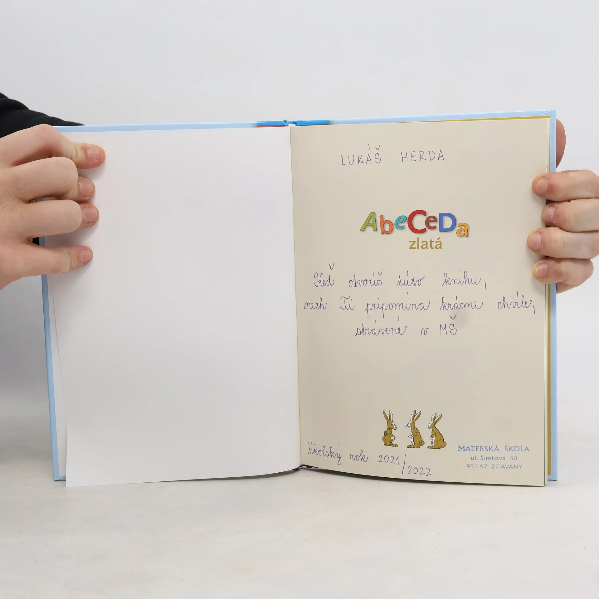 Spisovateľka Mária Ďuríčková ponúka začínajúcim čitateľom, prvákom a druhákom, veľa nových kamarátov v čarovnej knihe Abeceda zlatá. Aby škola nebolela, prináša deťom veselé rozprávky, básničky, riekanky a hádanky. Poteší ich príbeh kocúra Maximiliána, Guľka Bombuľka a jeho priateľov, Janky a Danky na návšteve v slimačom domčeku, veselé výmysly Jožka Mrkvičku a ešte ďalšie príbehy. Knihu bohato ilustroval Martin Kellenberger a aj vďaka veľkým písmenám je skvelým pomocníkom pre deti, aby sa skamarátili i s tými najneposlušnejšími písmenkami.