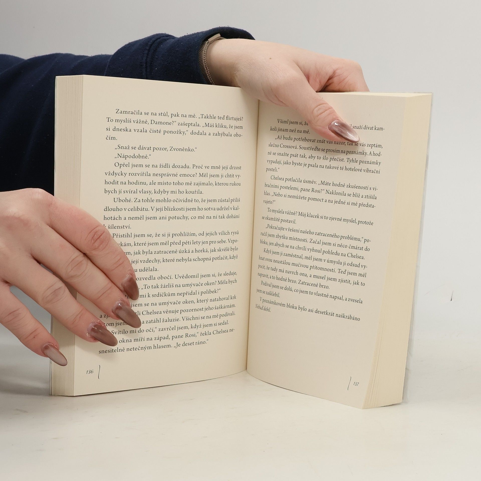 Znáte ten instinkt, který vás nutí utíkat, když se blíží něco děsivého? Jo. No, tak já ho evidentně přehlédla. Protože Damon Rose přišel a místo abych utekla, tak jsem otěhotněla. Ale to bylo před pěti lety a o dítěti jsem tomu-jehož-jméno-nesmíme-vyslovit nikdy neřekla. Taky jsem právě udělala něco velice hloupého. Znovu. Požádala jsem o práci v Damonově agentuře. Jo, pořád je neskutečně nádherný s ledovým pohledem, který říká „potřebuju mít ten fax na stole. Hned vedle tvých rukou.“ Pořád si myslí, že by se svět před ním měl sklonit a líbat mu nohy. To se nestane, šéfíku. Nepokleknu. Neomluvím se. A rozhodně ti neřeknu pravdu o naší dceři. Ani kdybys vyměnil ten zásobník na led, kterým maskuješ svoje srdce.