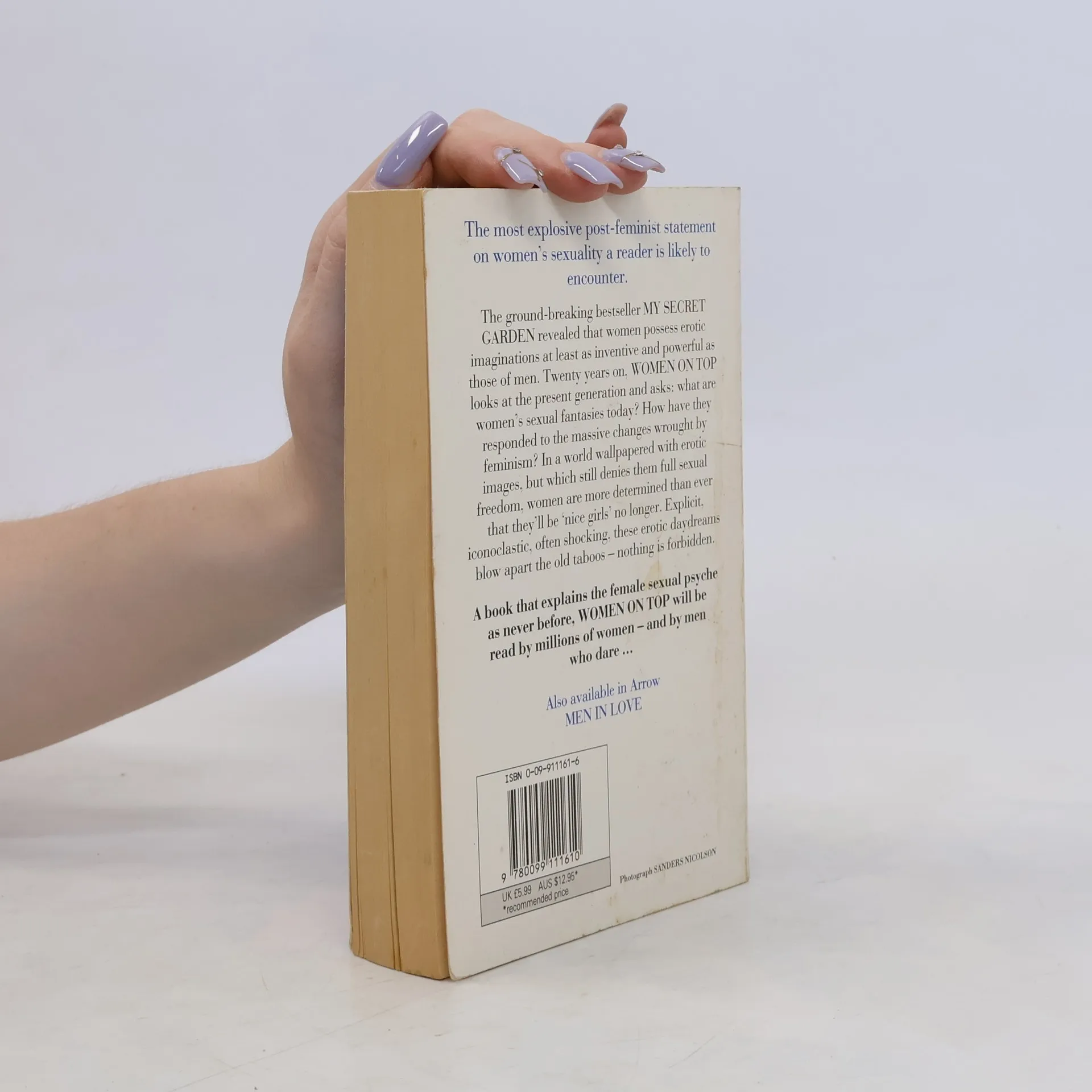 This is a compilation of the many letters sent to the author by women sharing their most intimate sexual fantasies about topics such as masturbation, oral sex, sex with more than one man, lesbian sex and anal sex. In her extended introduction to these erotic fantasies the author compares the fantasies of today's women with those featured in her previous book, My Secret Garden. She concludes that despite everything the fantasies of the women of the 1990s are more liberated, more experimental and more outrageous than those of the women of the 1970s. She also notes a tendency for younger women to be freer of guilt about explicit sexual fantasizing. Nancy Friday is the author of Men in Love.