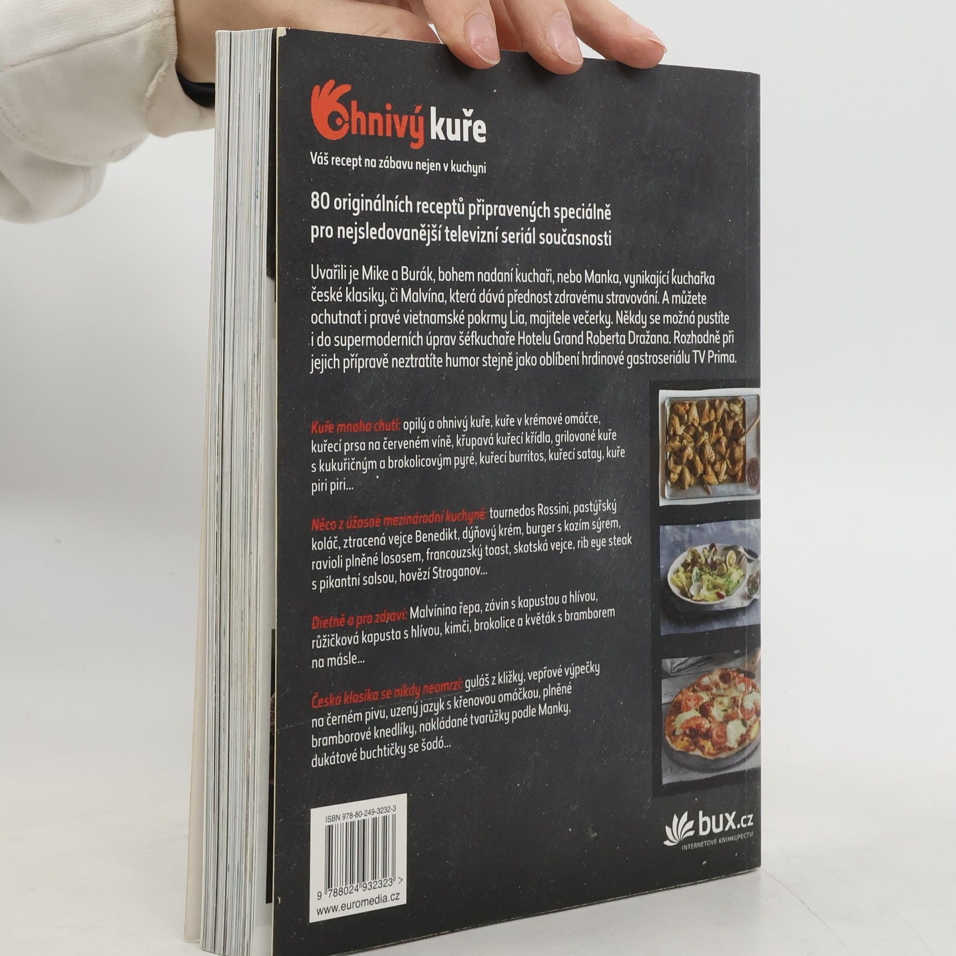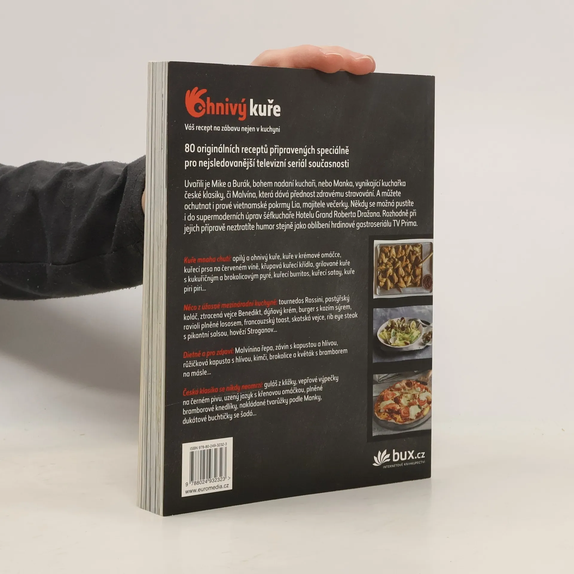 Vyberte si z 80 receptů české a mezinárodní kuchyně, které v nejsledovanějším seriálu současnosti, vysílaném na TV Prima, vařili jeho protagonisté Mike a Burák, bohem nadaní kuchaři, nebo Manka, vynikající kuchařka české klasiky, či Malvína, která dává přednost zdravému stravování. A můžete ochutnat i pravé vietnamské závitky či polévky Lia, majitele večerky. Někdy se možná pustíte i do úprav šéfkuchaře Roberta Dražana, i když jsou náročnější. Rozhodně při jejich přípravě neztratíte humor stejně jako naši hrdinové.