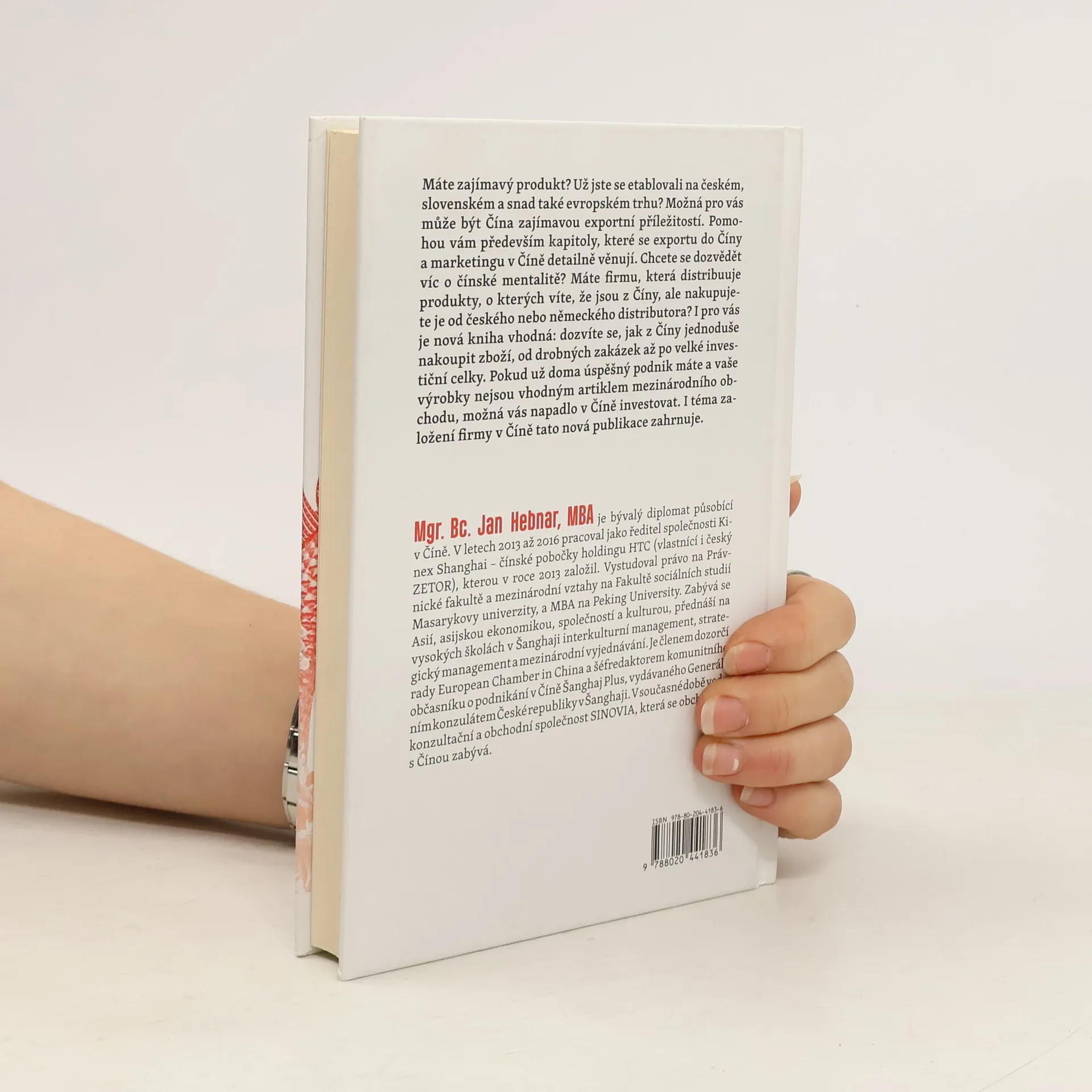 Máte zajímavý produkt? Už jste se etablovali na českém, slovenském a snad také evropském trhu? Možná pro Vás může být Čína zajímavou exportní příležitostí, a to především kapitoly, které se exportu do Číny a marketingu v Číně detailně věnují. Máte firmu, která distribuuje produkty, o kterých víte, že jsou z Číny, ale nakupujete je od českého nebo německého distributora? I pro Vás je nová kniha vhodná: dozvíte se, jak z Číny jednoduše nakupit zboží, od drobných zakázek až po velké investiční celky. Pokud už doma úspěšný podnik máte a vaše výrobky nejsou vhodným artiklem mezinárodního obchodu, možná vás napadlo v Číně investovat. I téma založení firmy v Číně tato nová publikace, jejíž autor je bývalý obchodní diplomat působící v Číně, zahrnuje.