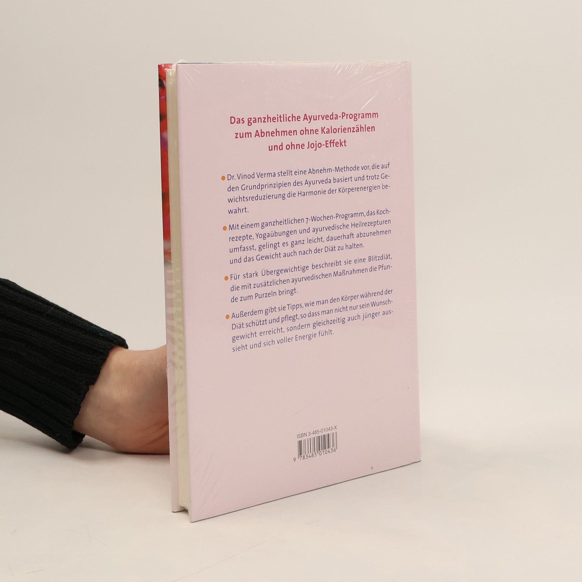 Das ganzheitliche Ayurveda-Programm zum Abnehmen ohne Kalorienzählen und ohne Jojo-Effekt Dr. Vinod Verma stellt eine Abnehm-Methode vor, die auf den Grundprinzipien des Ayurveda basiert und trotz Gewichtsreduzierung die Harmonie der Körperenergien bewahrt. Mit einem ganzheitlichen7-Wochen-Programm, das Kochrezepte, Yogaübungen und ayurvedische Heilrezepturen umfasst, gelingt es ganz leicht, dauerhaft abzunehmen und das Gewicht auch nach der Diät zu halten. Für stark Übergewichtige beschreibt sie eine Blitzdiät, die mit zusätzlichen ayurvedischen Maßnahmen die Pfunde zum Purzeln bringt. Außerdem gibt sie Tipps, wie man den Körper während der Diät schützt und pflegt, so dass man nicht nur sein Wunschgewicht erreicht, sondern gleichzeitig auch jünger aussieht und sich voller Energie fühlt.