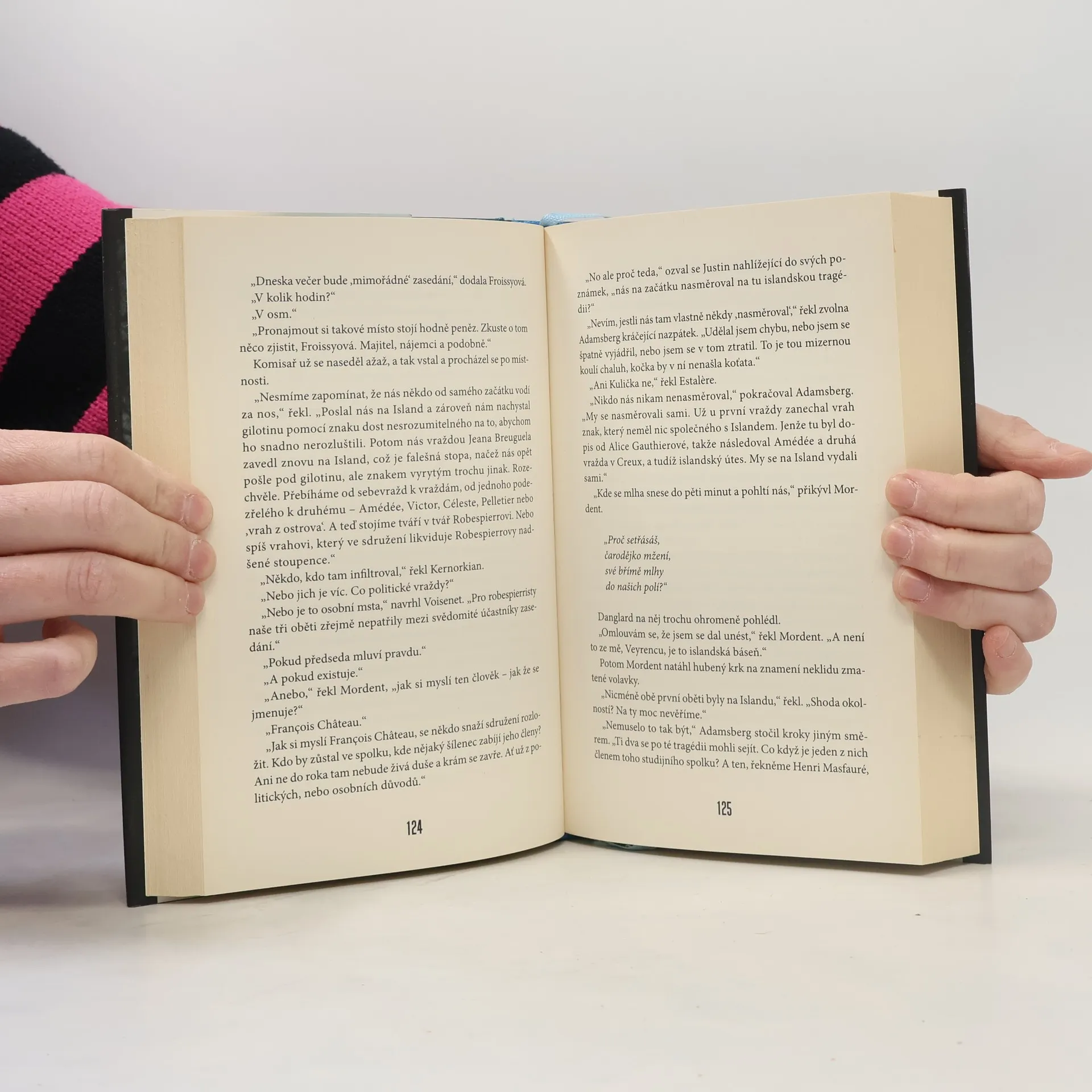 Náš starý dobrý známý, svérázný, sympatický komisař Adamsberg je postaven před nový případ. Na jeho počátku je několik zdánlivých sebevražd, které zaujmou komisařovu pozornost, protože se u každé z nich najde nakreslené prapodivné znamení, naznačující, že věci se zřejmě nemají tak, jak na první pohled působí. Pátrání dovede tentokrát Adamsberga nejenom do vzdálených končin na mrazivý, mlhami zahalený Island, ale také k tajuplné společnosti lidí vyznávajících revoluční odkaz Maximiliena Robespierra, kteří se v dobových kostýmech a parukách scházejí na tajných zasedáních a do slova a do písmene reprodukují průběh někdejších schůzí revolučního Národního shromáždění. Jako i v předchozích knihách staví i zde autorka, profesí archeoložka, svůj příběh na pozadí historických skutečností, v nichž vyšetřovateli, komisaři Adamsbergovi účinně pomáhá orientovat se jeho velmi vzdělaný a bílému vínu holdující major Danglard.