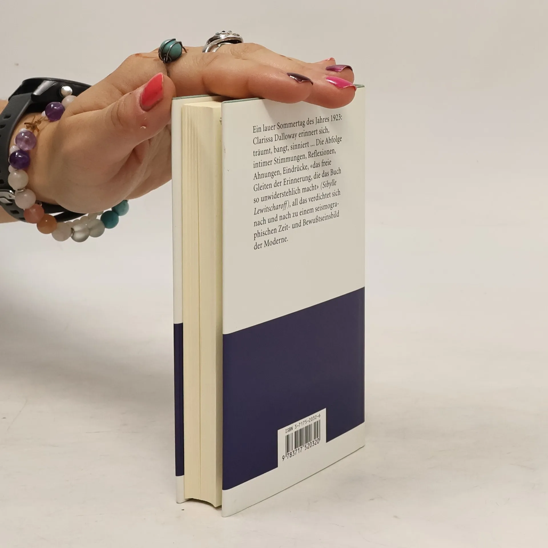 Englische Autorin (1882-1941). - Ein Junitag im Jahre 1923. Clarissa Dalloway, (sie hatte schon einen Auftritt in Die Fahrt hinaus), Gattin eines Parlamentsabgeordneten, trifft die Vorbereitungen für eine große Abendgesellschaft. Während dieser Verrichtungen ergeht sie sich in Erinnerungen, lotet ihr Leben aus und wird sich der Enge und Leere ihres Daseins schmerzlich bewußt. Mrs. Dalloways Reflexionen, wie überhaupt die inneren Monologe des Romans, bilden den eigentlichen Kern der Handlung, während die Darsteller puppengleich auf dem gesellschaftlichen Parkett agieren. Dieses fast filmisch anmutende Übereinanderschichten gleichzeitiger Ereignisse griff die Autorin in ihrem späteren Roman Die Wellen erneut auf