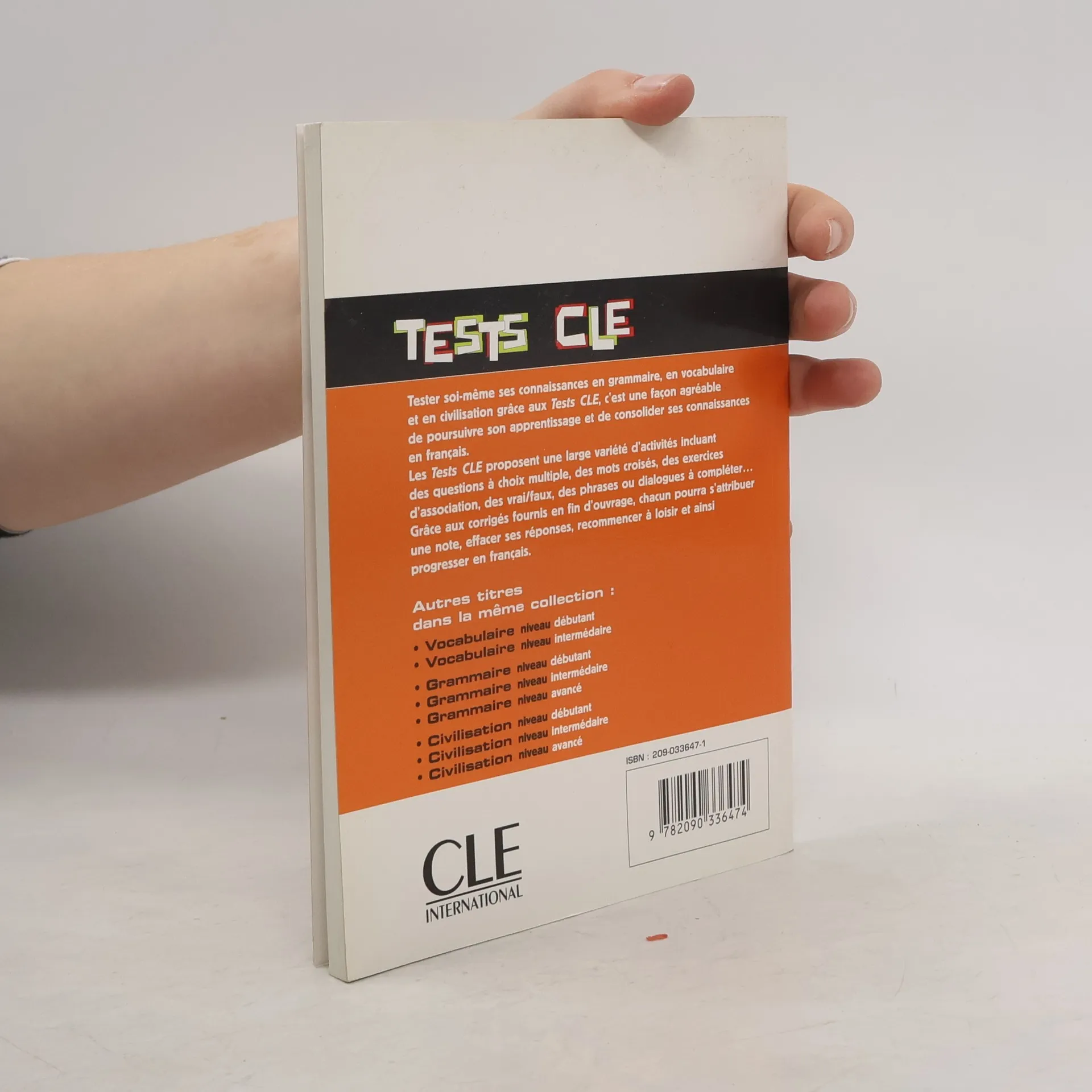 Tester soi-meme ses connaissances en vocabulaire grâce aux Tests CLE, c'est une façon agréable de poursuivre son apprentissage et de consolider ses connaissances en français. Les Tests CLE en vocabulaire niveau avancé s'adressent a tous les étudiants, adolescents et adultes, désireux de vérifier leurs connaissances en vocabulaire. Les exercices proposés sont variés : questions a choix mutiple, exercices d'association, vrai/faux, phrases ou dialogues a compléter...Les activités ludiques, telles que les charades et les mots croisés, ne sont pas en reste. Le livre est composé de 10 chapitres qui rappellent les notions abordées durant l'apprentissage de la langue et dans les méthodes actuelles de langue de niveau 3. Les corrigés en fin d'ouvrage permettent a l'utilisateur du manuel de travailler en autonomie et de choisir les chapitres qu'il veut aborder dans l'ordre qu'il souhaitera.