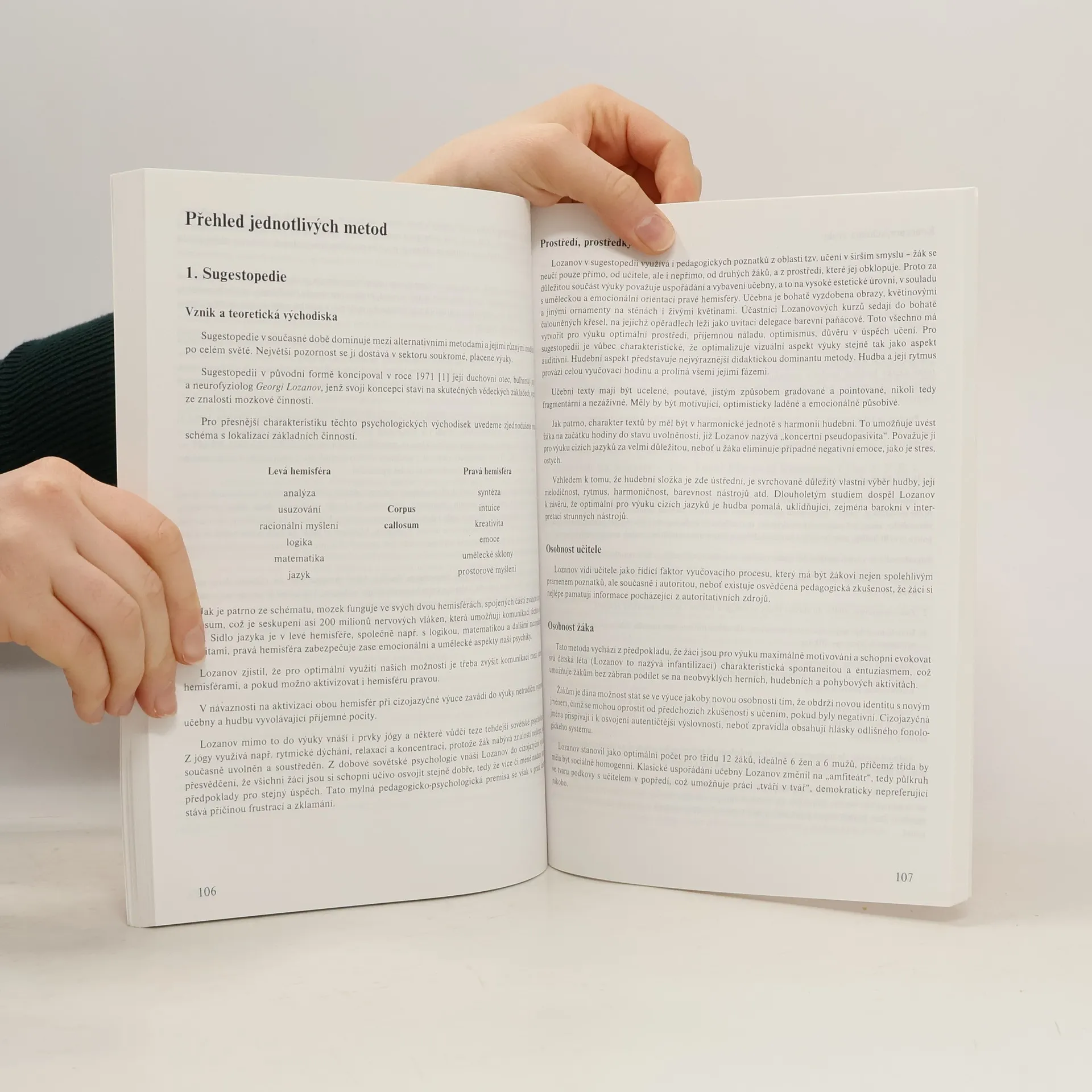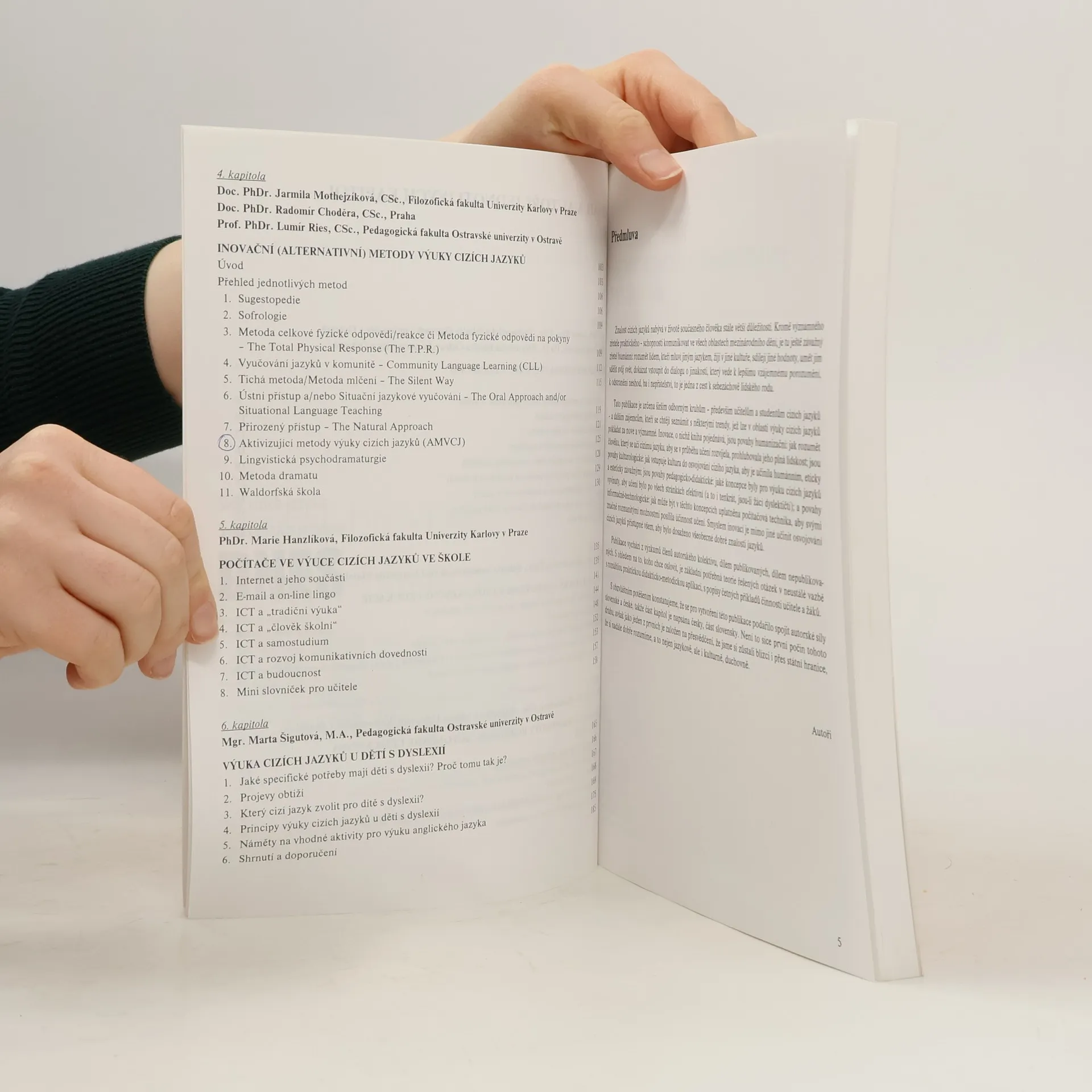 Kniha nabízí popis jedenácti inovační metod vyučování a ukazuje tak rozdílné přístupy k učení - vysvětluje například metodu celkové fyzické odpovědi (TPR), přrozený přístup, waldorfskou školu, aktivizující metody výuky cizích jazyků, tichou metodu, apod.