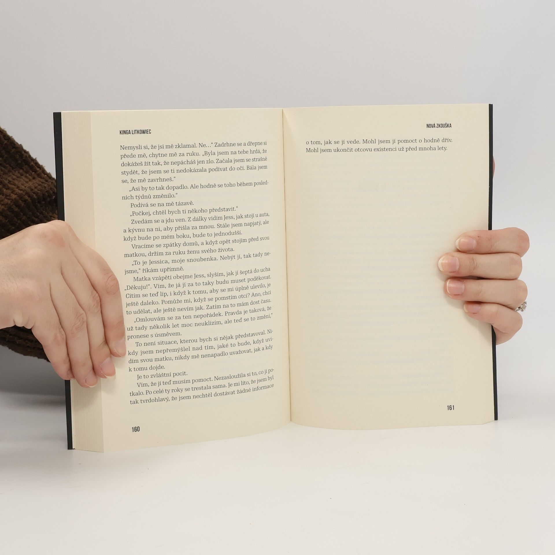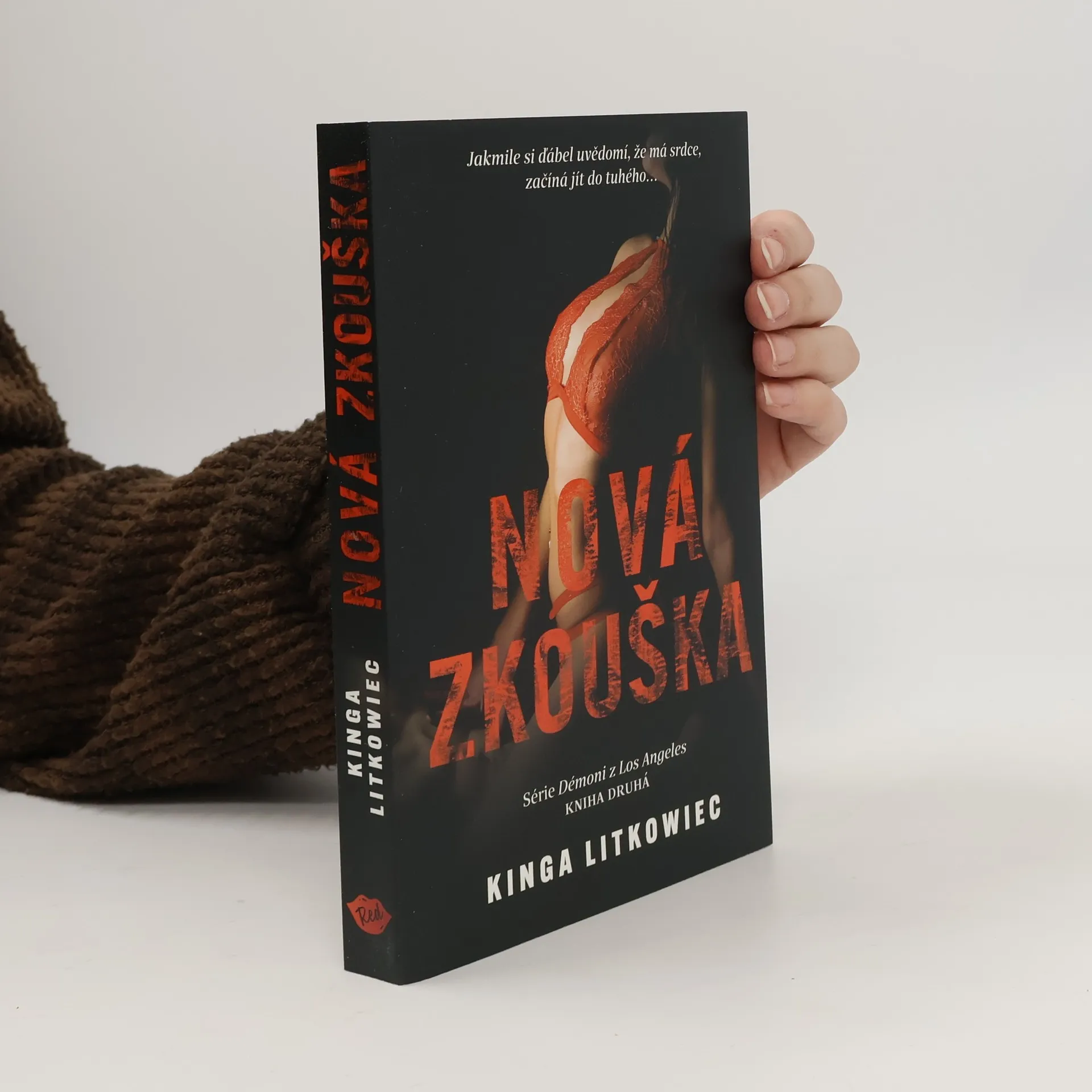 Každý člověk má srdce, ale ne každý s ním umí správně zacházet. Jessica Turner se pomalu sžívá se situací, do které se dostala. Vzniká otázka, jestli je to opravdu tak děsivý vztah, který se dá vydržet jen s největším sebezapřením? Skutečně Jessica jen plní příkazy svého trýznitele, aby ji už konečně propustil? Dohoda, kterou mladá žena uzavřela s ďáblem v lidském těle, získává ze dne na den jinou podobu. Zjišťuje, že to, co pro ni bylo ze začátku nepřijatelné, najednou není tak děsivé, a celá tato brutální erotická hra se jí začíná líbit. Jenže proměnou neprochází jen Jessica, ale i její trýznitel. Liam O´Dire se dostává do situace, které se chtěl za každou cenu vyhnout. Díky mladé ženě ďábel opět objevil své srdce… A tak dvojice pokračuje ve hře, ale už s jinými pravidly, a také s dalšími postavami, které se do ní zapojují. Objevují se noví hráči, kteří nechtějí hrát fair play. Touží po tom, co vlastní Liam… Nová zkouška je pokračování erotického románu Kingy Litkowiec Cizí dluh“, který vyšel v r. 2020. Druhý díl série Démony Los Angeles ukazuje vztah obou hrdinů z úplně jiné perspektivy. Je to kniha akční, ale zároveň velmi smyslná, plná vášně a drsné erotiky.