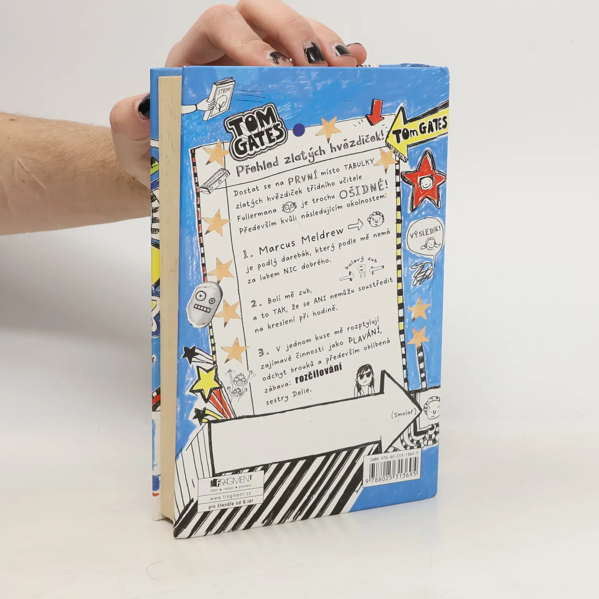 Pokračování deníku Toma Gatese. Přehled zlatých hvězdiček! Dostat se na PRVNÍ místo TABULKY zlatých hvězdiček třídního učitele Fullermana je trochu OŠIDNÉ! Předdevším kvůli následujícím okolnostem: 1. Marcus Meldrew je podlý darebák, který podle mě nemá za lubem NIC dobrého. 2. Bolí mě zub, a to TAK, že se ANI nemůžu soustředit na kreslení při hodině. 3. V jednom kuse mě rozptylují zajímavé činnosti jako PLAVÁNÍ, odchyt brouků a především oblíbená zábava: rozčilování sestry Delie.