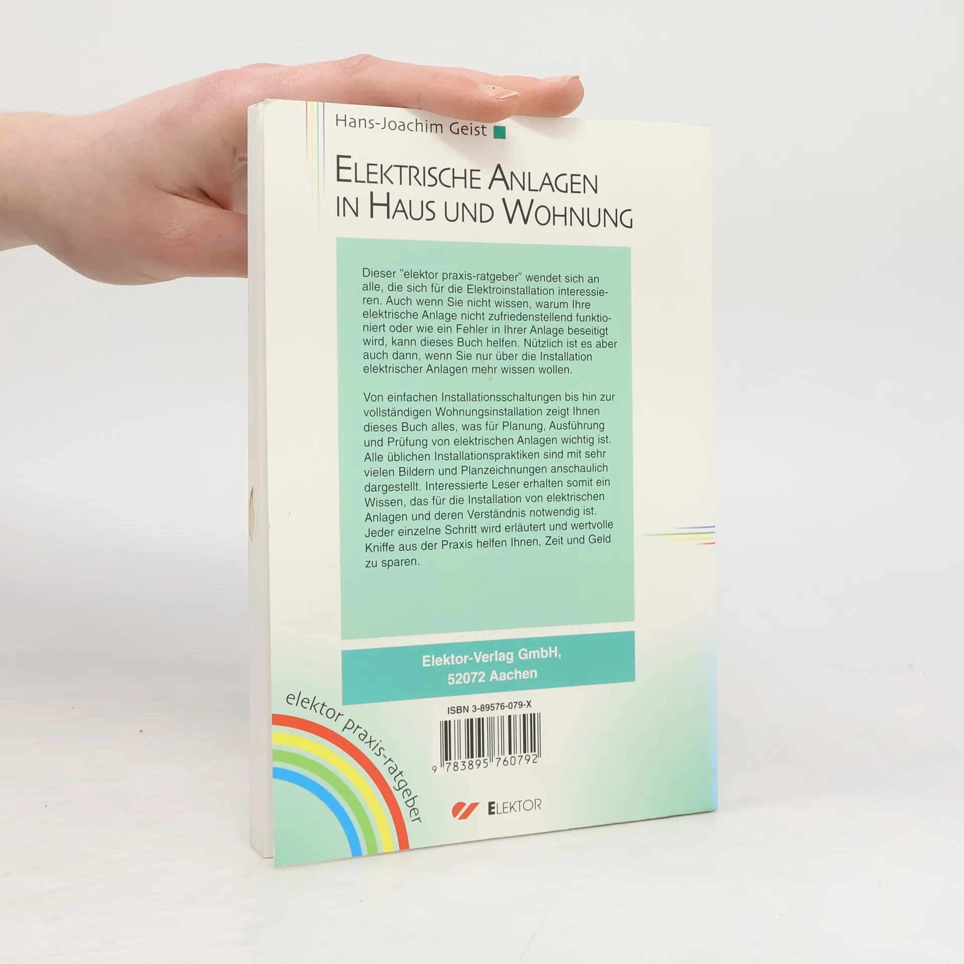 Dieser Praxis-Ratgeber wendet sich an alle, die sich für die Elektroinstallation interessieren. Auch wenn Sie nicht wissen, warum Ihre elektrische Anlage nicht zufriedenstellend funktioniert oder wie ein Fehler in Ihrer Anlage beseitigt wird, kann dieses Buch Ihnen helfen. Nützlich ist es aber sicherlich auch dann, wenn Sie nur über die Installation elektrischer Anlagen mehr wissen wollen. Von einfachen Installationsschaltungen bis hin zur vollständigen Wohnungsinstallation zeigt Ihnen dieses Buch alles, was für Planung, Ausführung und Prüfung von elektrischen Anlagen wichtig ist. Alle üblichen Installationspraktiken haben wir für Sie mit sehr vielen Bildern und Planzeichnungen anschaulich dargestellt. Interessierte Leser erhalten somit Wissen, das für die Installation von elektrischen Anlagen notwendig ist. Jeder einzelne Schritt wird erläutert, und wertvolle Kniffe aus der Praxis helfen Ihnen, Zeit und Geld zu sparen.