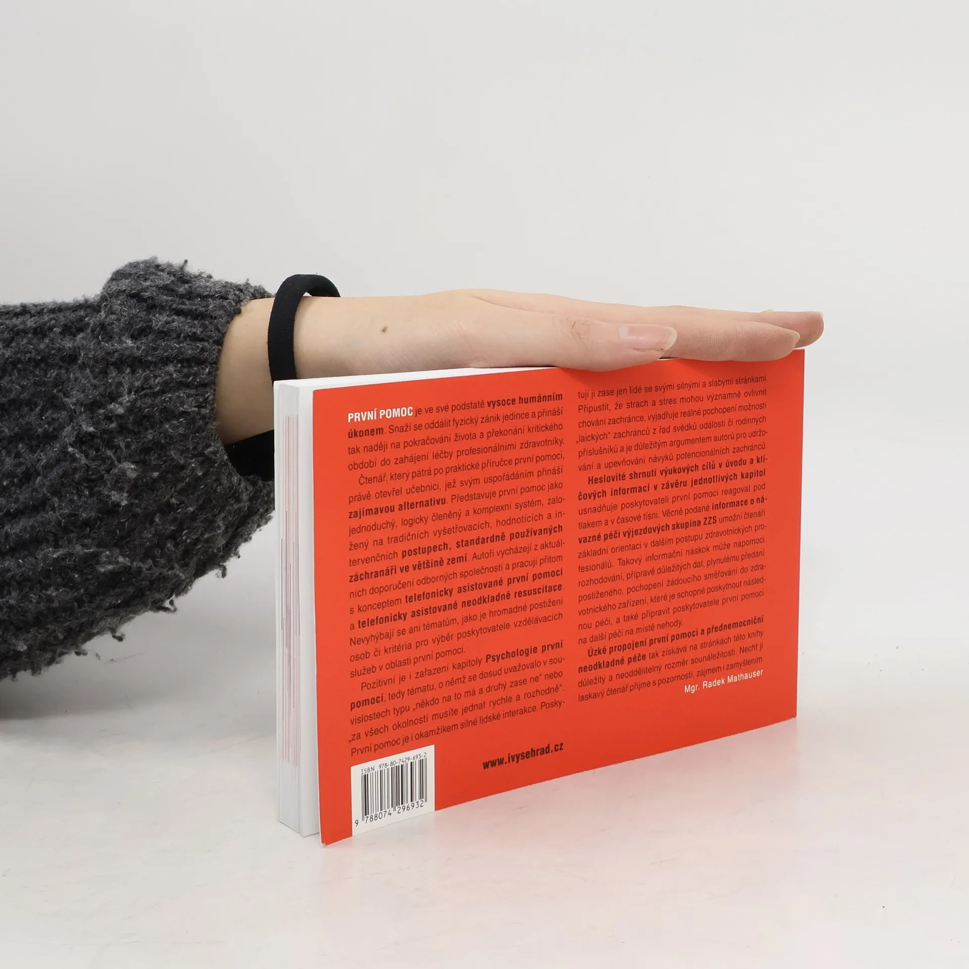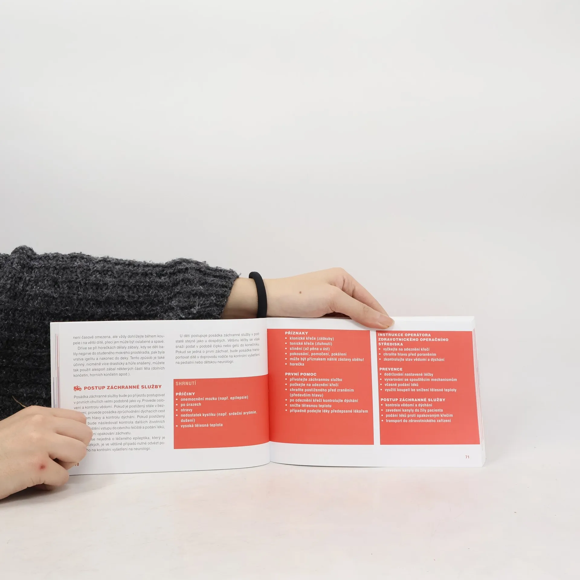 Publikace je určena všem, kteří si nejsou jisti v základních postupech první pomoci, ale také těm, kteří již základní znalosti mají, ale chtějí si postupy připomenout nebo zjistit, kam se první pomoc v posledních letech posunula. Snahou je zjednodušit je tak, aby byly pro laické poskytovatele co nejsnáze zapamatovatelné. V této publikaci se můžete setkat s novým pohledem na postupy, které jste se možná kdysi učili jinak. Kniha se vyznačuje moderním přístupem založeným na interakci poskytovatele první pomoci, operátora tísňové linky a posádky zdravotnické záchranné služby. U každého popisovaného stavu nebo situace se dozvíte, co může být jeho příčinou a jaká je prevence. Pokud k náhlému ohrožení zdraví nebo života dojde, je zcela zásadní volání na tísňovou linku, proto vás u každého stavu seznámíme také s postupy telefonicky asistované první pomoci a pokusíme se následně přiblížit, jak by mohla postupovat posádka záchranné služby po příjezdu na místo.