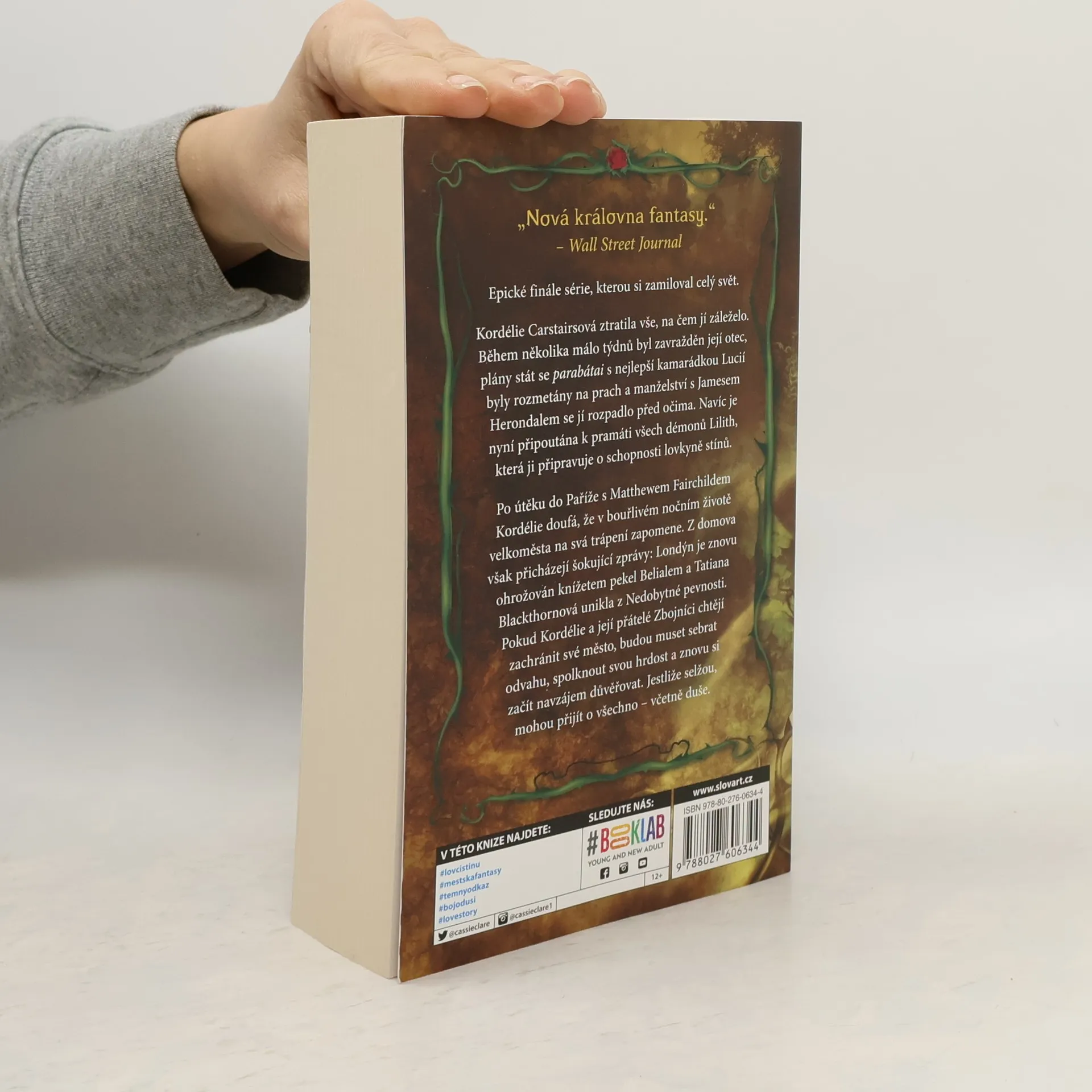 Kordélie Carstairsová ztratila vše, na čem jí záleželo. Během několika málo týdnů byl zavražděn její otec, plány stát se parabátai s nejlepší kamarádkou Lucií byly rozmetány na prach a manželství s Jamesem Herondalem se jí rozpadlo před očima. Navíc je připoutána k pramáti všech démonů Lilith, která ji připravuje o schopnosti lovkyně stínů. Po útěku do Paříže s Matthewem Fairchildem Kordélie doufá, že v bouřlivém nočním životě velkoměsta na všechno zapomene. Z domova však přicházejí šokující zprávy: Londýn je znovu ohrožen knížetem pekel Belialem a Tatiana Blackthornová unikla z Nedobytné pevnosti.Pokud chtějí Kordélie a její přátelé Zbojníci zachránit své město, budou muset sebrat veškerou odvahu, spolknout svou hrdost a znovu si začít navzájem důvěřovat. Jestliže selžou, mohou přijít o všechno - včetně duše. Epické finále série uzavírá trilogii o londýnských lovcích stínů Poslední hodina.