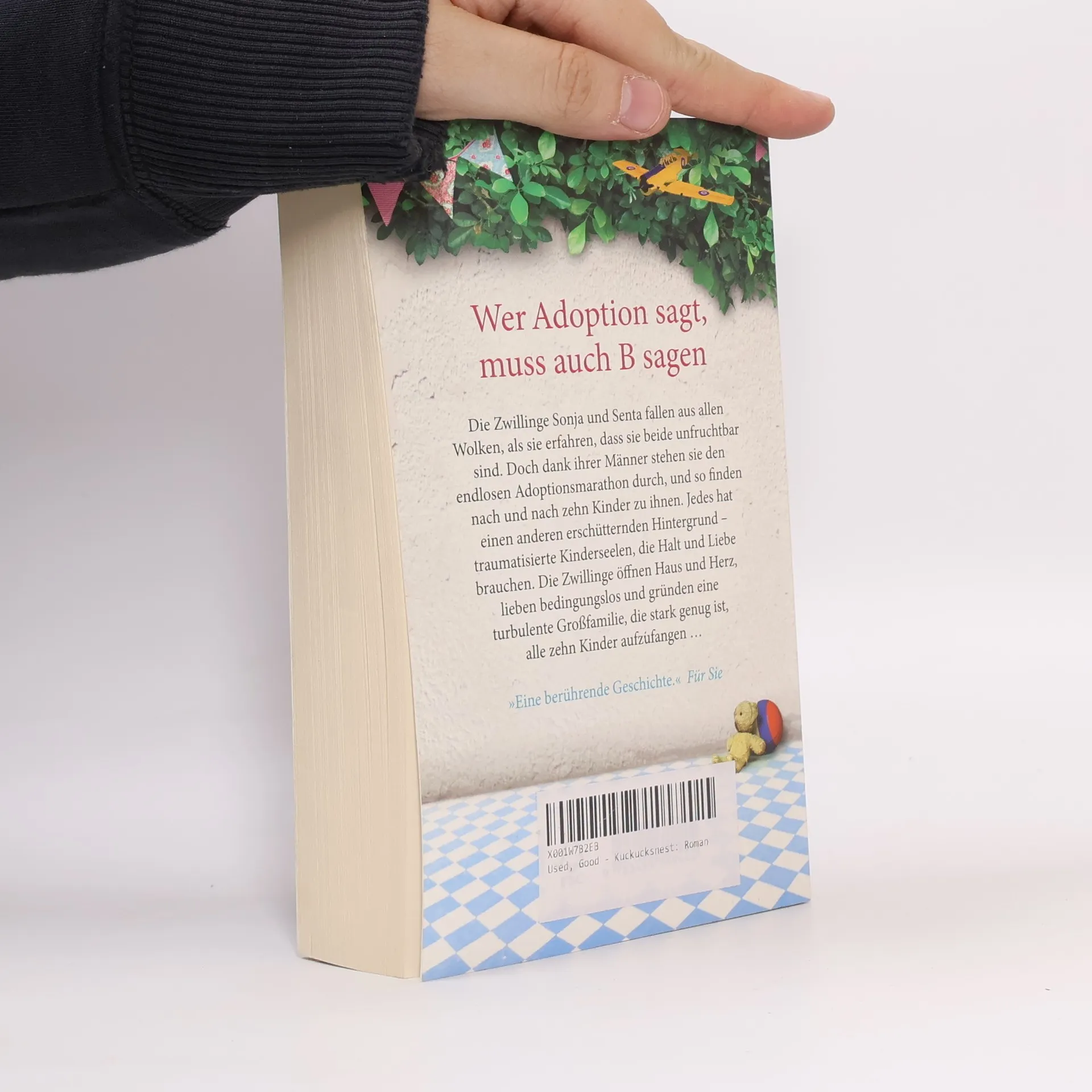 Wer Adoption sagt, muss auch B sagen Die Zwillinge Sonja und Senta fallen aus allen Wolken, als sie erfahren, dass sie beide unfruchtbar sind. Doch dank ihrer Männer stehen sie den endlosen Adoptionsmarathon durch, und so finden nach und nach zehn Kinder zu ihnen. Jedes hat einen anderen erschütternden Hintergrund – traumatisierte Kinderseelen, die Halt und Liebe brauchen. Die Zwillinge öffnen Haus und Herz, lieben bedingungslos und gründen eine turbulente Großfamilie, die stark genug ist, alle zehn Kinder aufzufangen …Eine berührende Geschichte voller Mut und Konsequenz und dem unerschütterlichen Glauben an die Kraft der Familie