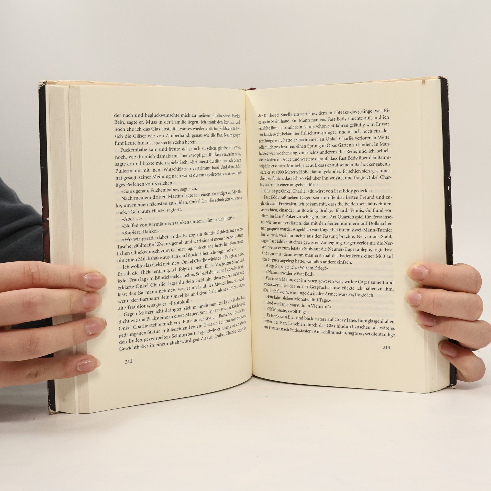 Eine Bar ist vielleicht nicht der beste Ort für ein Kind, aber bei weitem nicht der schlechteste. Vor allem das 'Dickens' nicht, mit seinen warmherzigen und skurrilen Figuren: Smelly, der Koch, Bob the Copund seine geheimnisvolle Vergangenheit oder Cager, der Vietnam-Veteran. Für den kleinen JR sind sie alle bessere Väter als seiner – wäre er da gewesen. Von ihnen lernt er Mut, Zuversicht und die Gewissheit, dass es nicht nur Gut und Böse gibt, dass Bücher Berge versetzen können und dass man an gebrochenem Herzen nicht stirbt. In der Bar hört er zum ersten Mal Sinatra, sieht Baseballspiele im Fernsehen, und trinkt sein erstes Bier. Er lernt auch, dass Träume wahr werden können – wenn man für sie kämpft. 'Komisch, ehrlich, traurig und lebensnah - JR Moehringer schreibt unwiderstehlich.' Vanity Fair