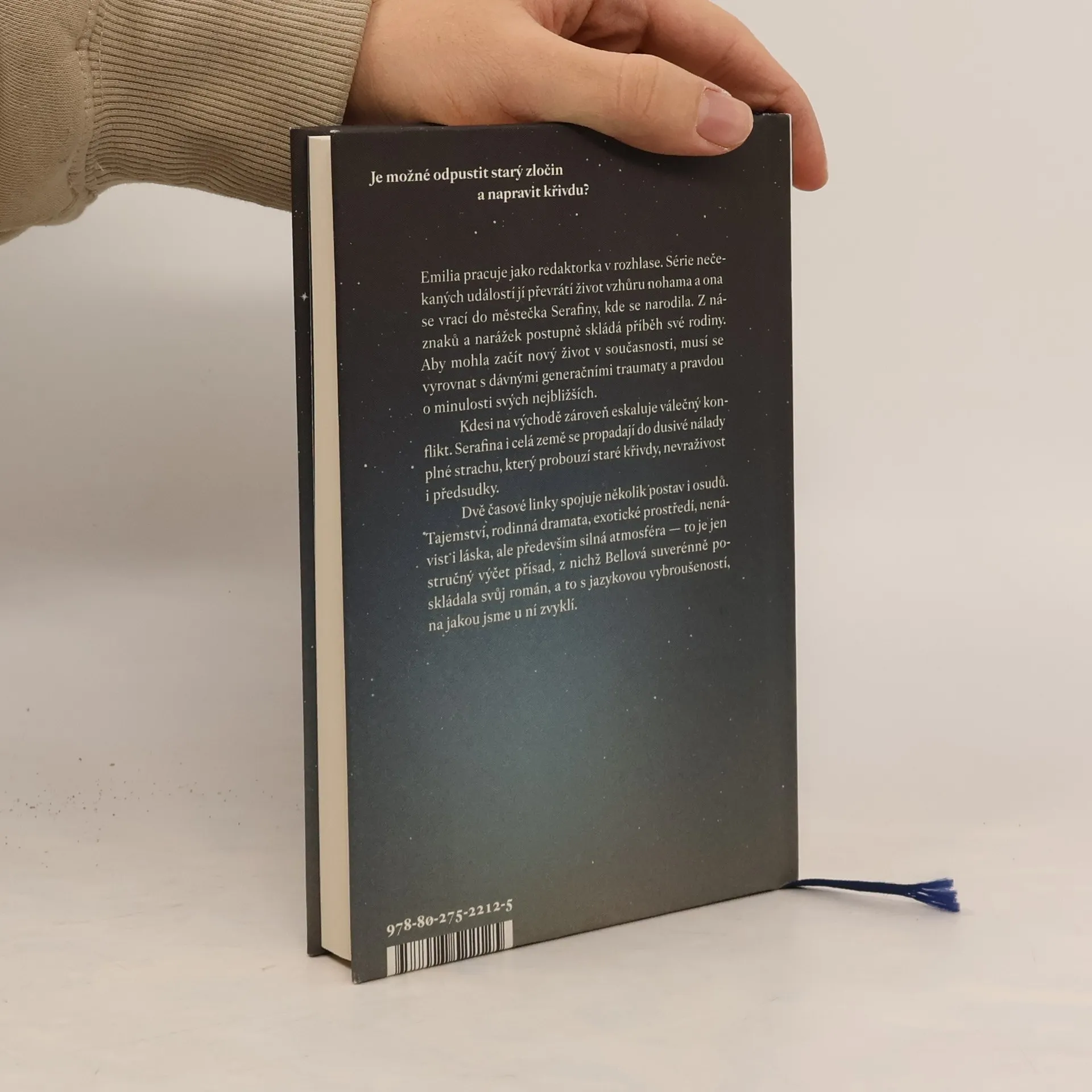 Emilia pracuje jako redaktorka v rozhlase. Série nečekaných událostí jí převrátí život vzhůru nohama a ona se vrací do městečka Serafiny, kde se narodila. Z náznaků a narážek postupně skládá příběh své rodiny. Aby mohla začít nový život v současnosti, musí se vyrovnat s dávnými generačními traumaty a pravdou o minulosti svých nejbližších. Kdesi na východě zároveň eskaluje válečný konflikt. Serafina i celá země se propadají do dusivé nálady plné strachu, který probouzí staré křivdy, nevraživost i předsudky. Dvě časové linky spojuje několik postav i osudů. Tajemství, rodinná dramata, exotické prostředí, nenávist i láska, ale především silná atmosféra — to je jen stručný výčet přísad, z nichž Bellová suverénně poskládala svůj román, a to s jazykovou vybroušeností, na jakou jsme u ní zvyklí.