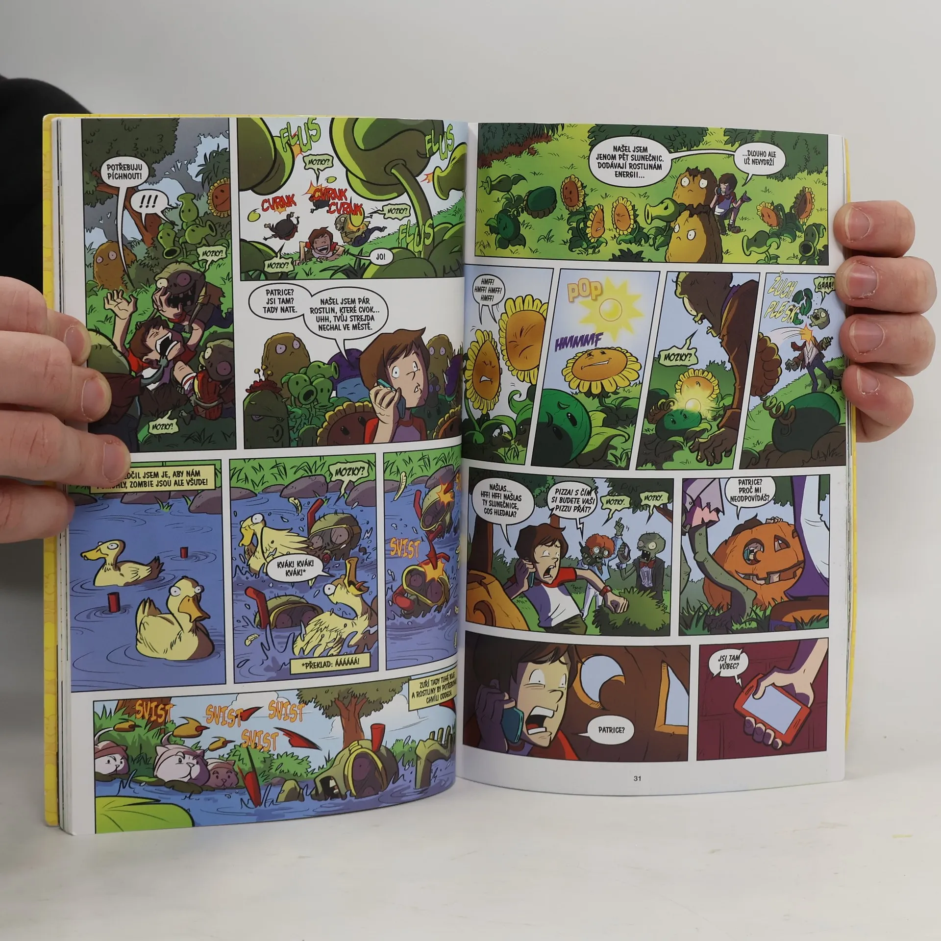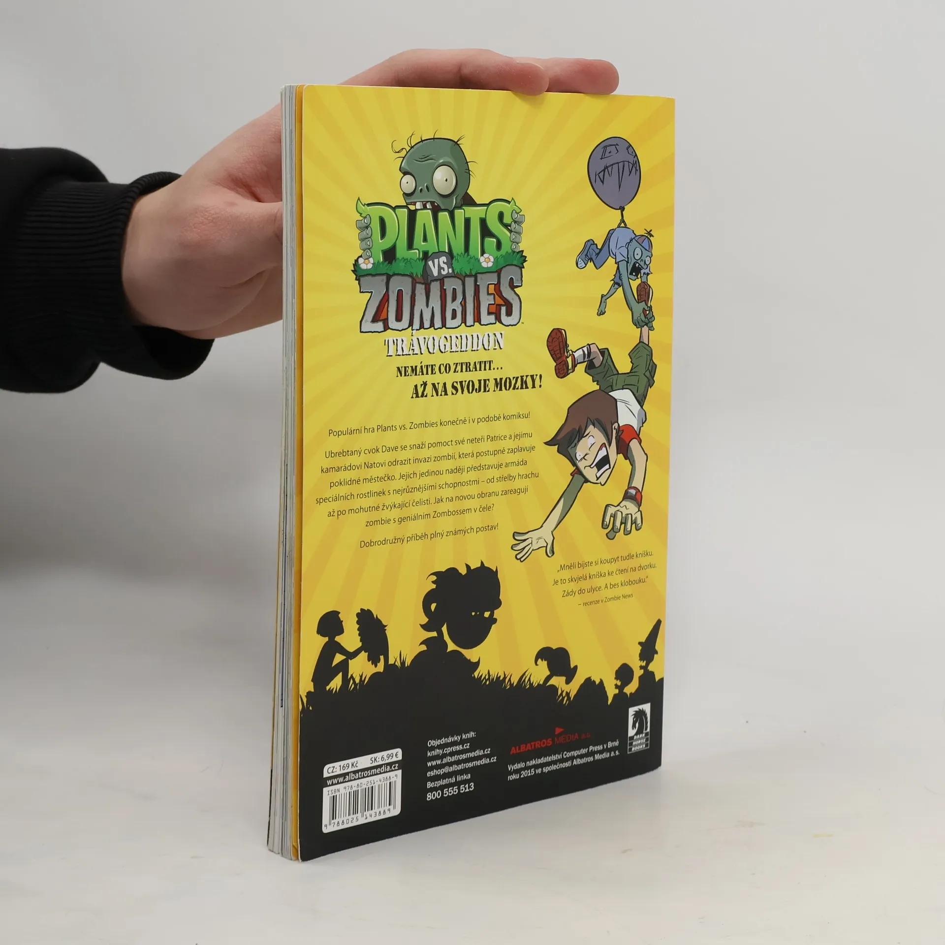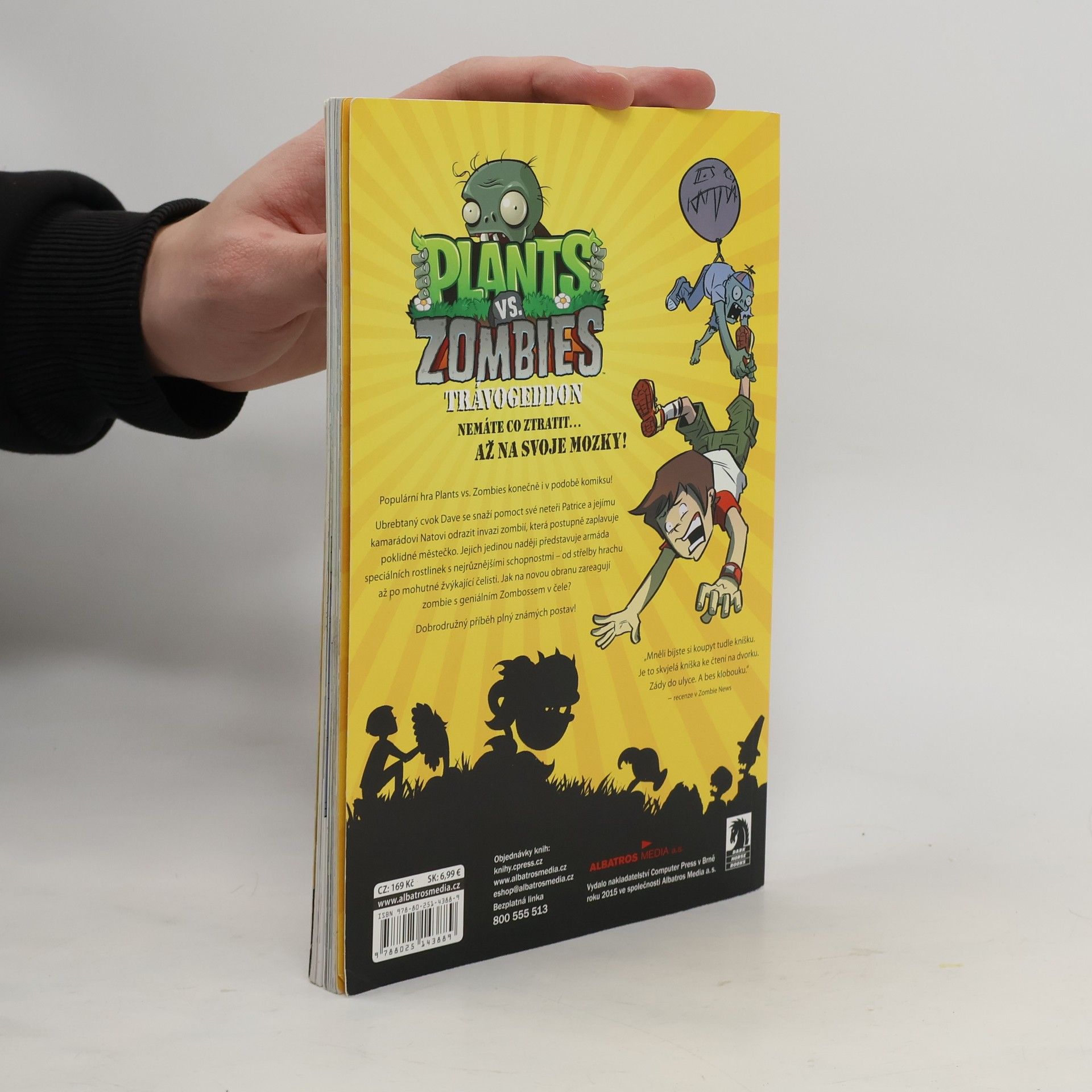 Populární hra Plants vs. Zombies konečně i v podobě komiksu! Ubrebtaný cvok Dave se snaží pomoct své neteři Patrice a jejímu kamarádovi Natovi odrazit invazi zombií, která postupně zaplavuje poklidné městečko. Jejich jedinou naději představuje armáda speciálních rostlinek s nejrůznějšími schopnostmi – od střelby hrachu až po mohutné žvýkající čelisti. Jak na novou obranu zareagují zombie s geniálním Zombossem v čele? Dobrodružný příběh plný známých postav!