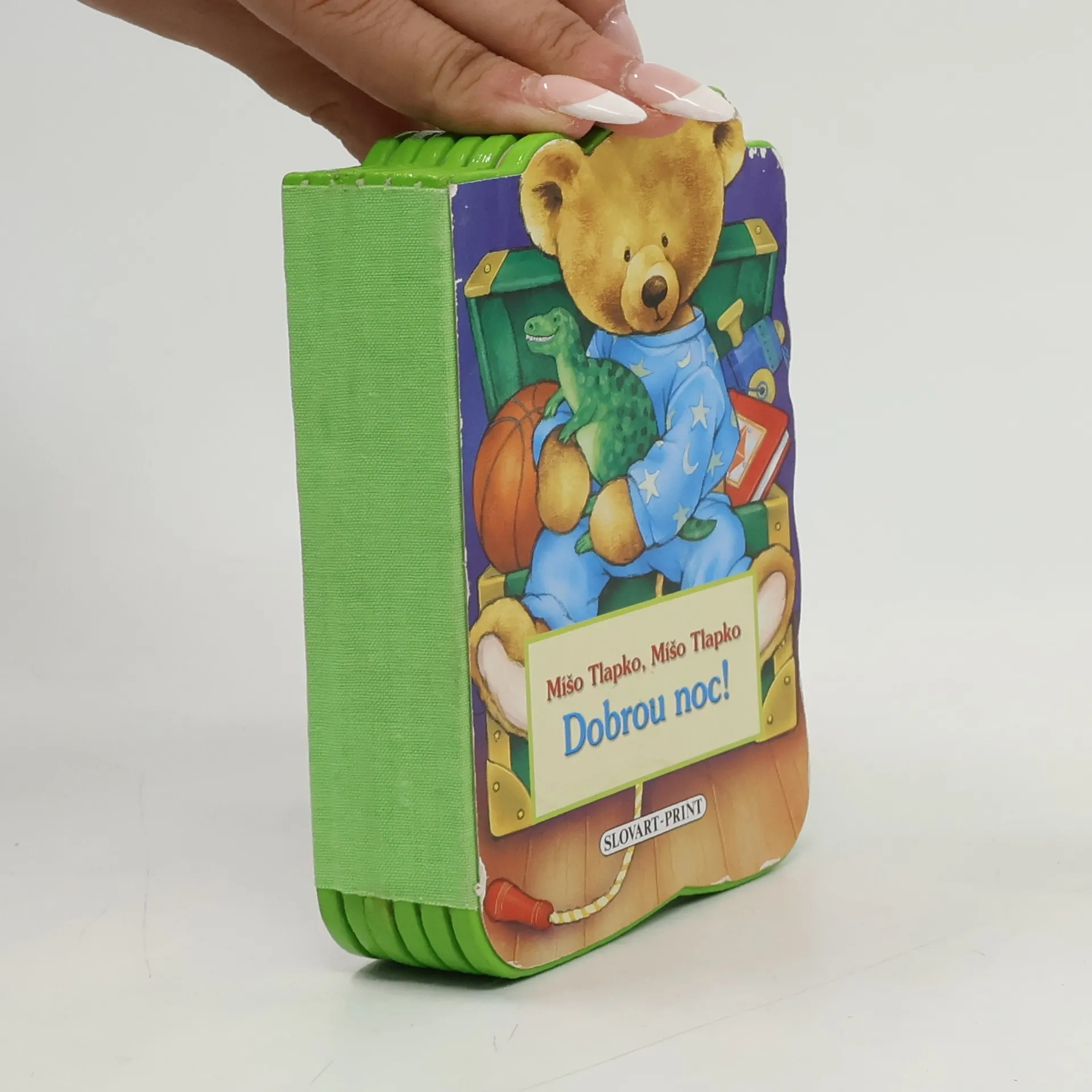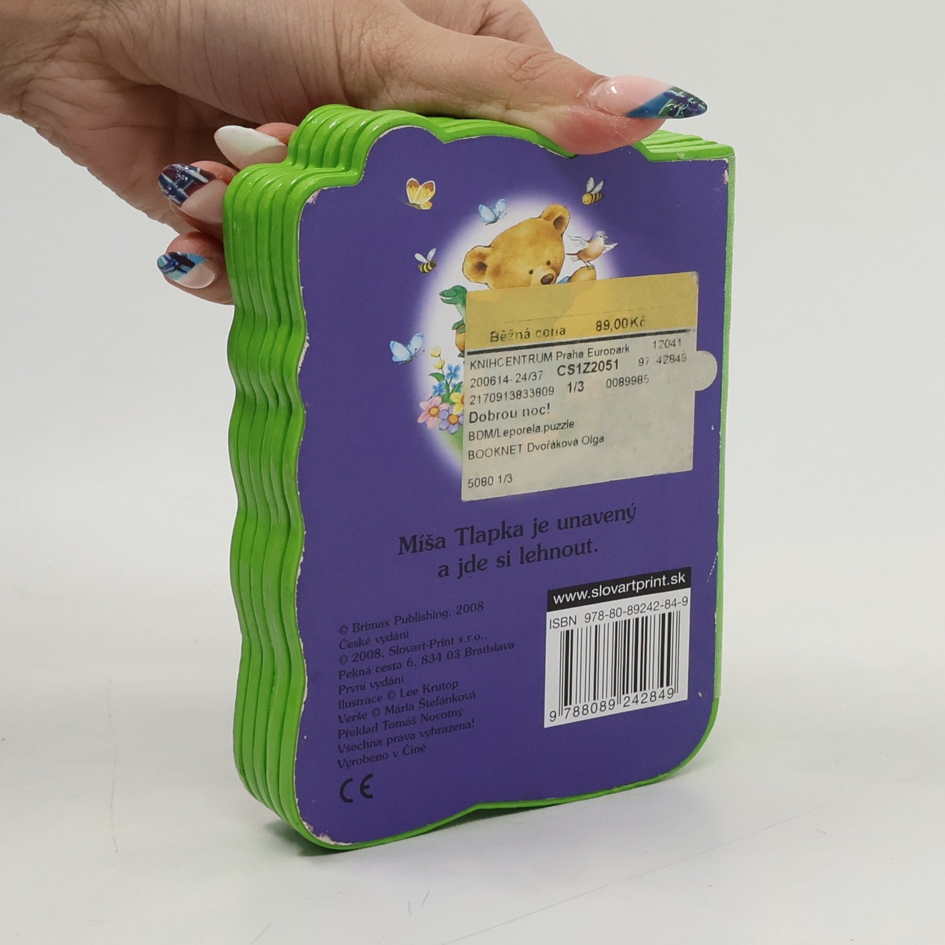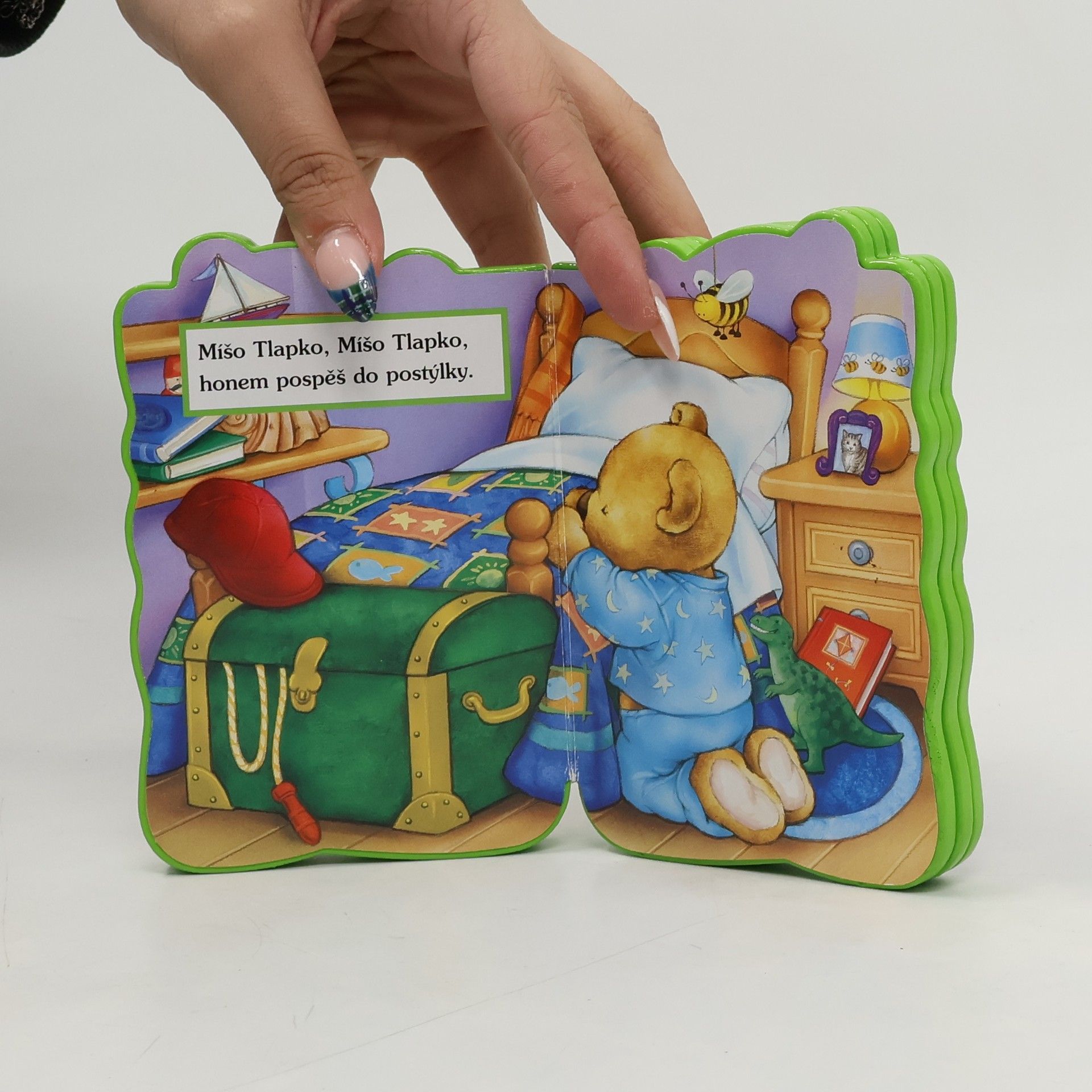 V leporelu najdete kratičkou básničku a dovíte se jak se Míša Tlapka po rušném dni uložil do postýlky.