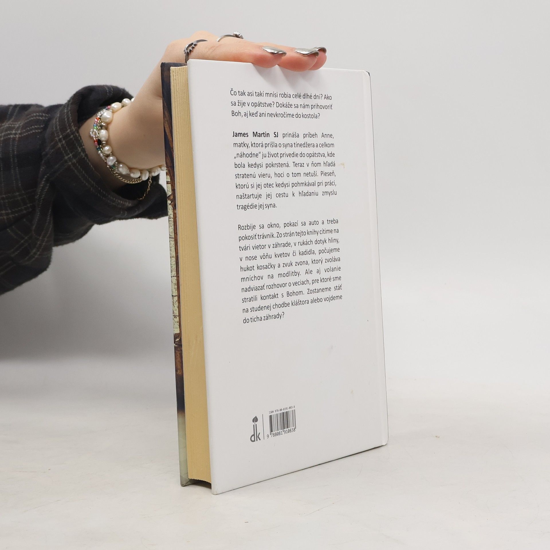 Čo tak asi takí mnísi robia celé dlhé dni? Ako sa žije v opátstve? Dokáže sa nám prihovoriť Boh, aj keď ani nevkročíme do kostola? James Martin SJ prináša príbeh Anne, matky, ktorá prišla o syna tínedžera a celkom „náhodne“ ju život privedie do opátstva, kde bola kedysi pokrstená. Teraz v ňom hľadá stratenú vieru, hoci o tom netuší. Pieseň, ktorú si jej otec kedysi pohmkával pri práci, naštartuje jej cestu k hľadaniu zmyslu tragédie jej syna. Rozbije sa okno, pokazí sa auto a treba pokosiť trávnik. Zo strán tejto knihy cítime na tvári vietor v záhrade, v rukách dotyk hliny, v nose vôňu kvetov či kadidla, počujeme hukot kosačky a zvuk zvonu, ktorý zvoláva mníchov na modlitby. Ale aj volanie nadviazať rozhovor o veciach, pre ktoré sme stratili kontakt s Bohom. Zostaneme stáť na studenej chodbe kláštora, alebo vojdeme do ticha záhrady?
