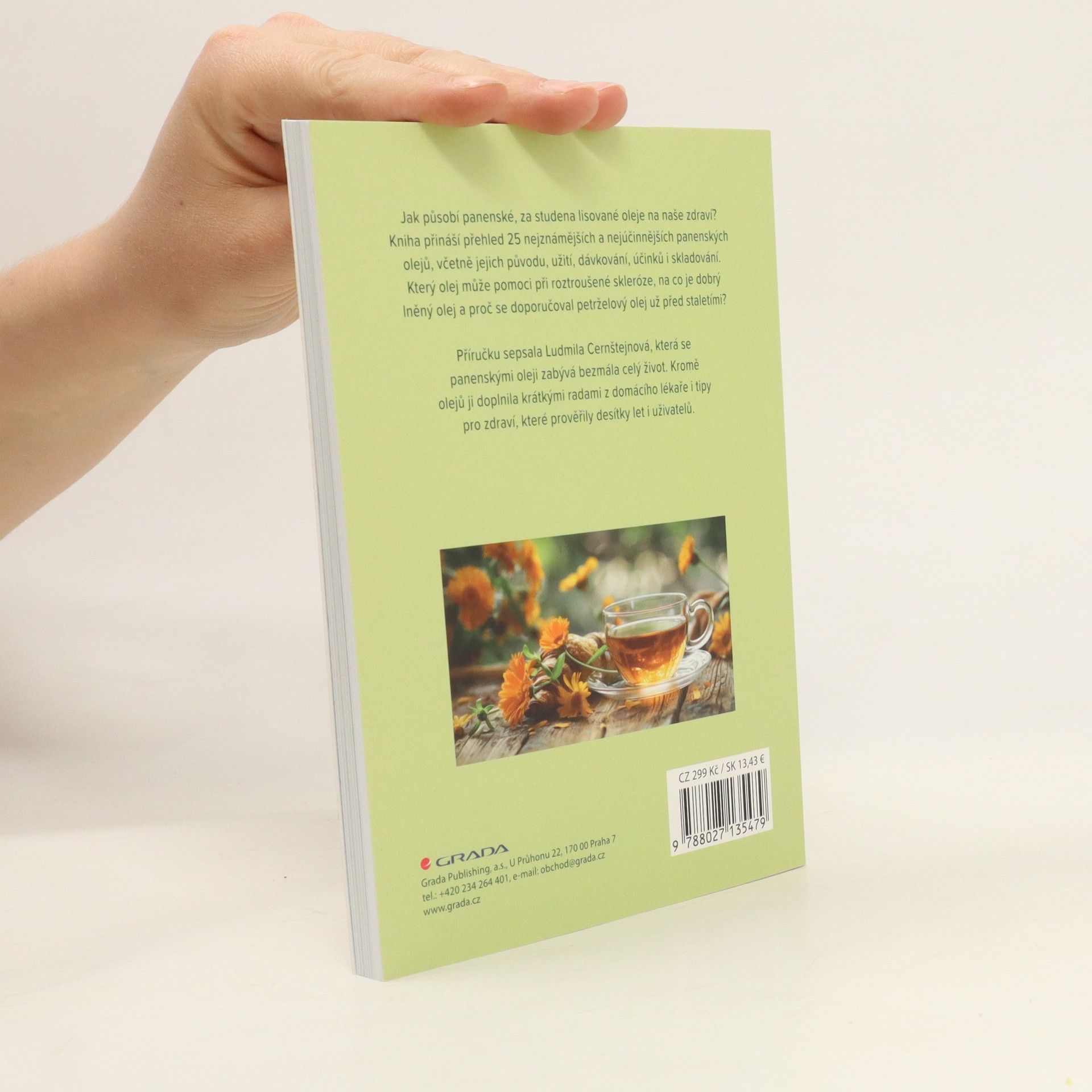 Jak působí panenské, za studena lisované oleje na naše zdraví? Kniha přináší přehled nejznámějších a nejúčinnějších panenských olejů, včetně jejich složení, užití, dávkování, účinků i skladování. Který olej může pomoci při roztroušené skleróze, na co je dobrý lněný olej a proč se doporučoval petrželový olej už před staletími? Příručku sepsala Ludmila Cernštejnová, která se panenskými oleji zabývá bezmála celý život. Kromě olejů ji doplnila domácím lékařem, bylinkovým rádcem i tipy pro zdraví a pohodu, prověřenými desetiletími.