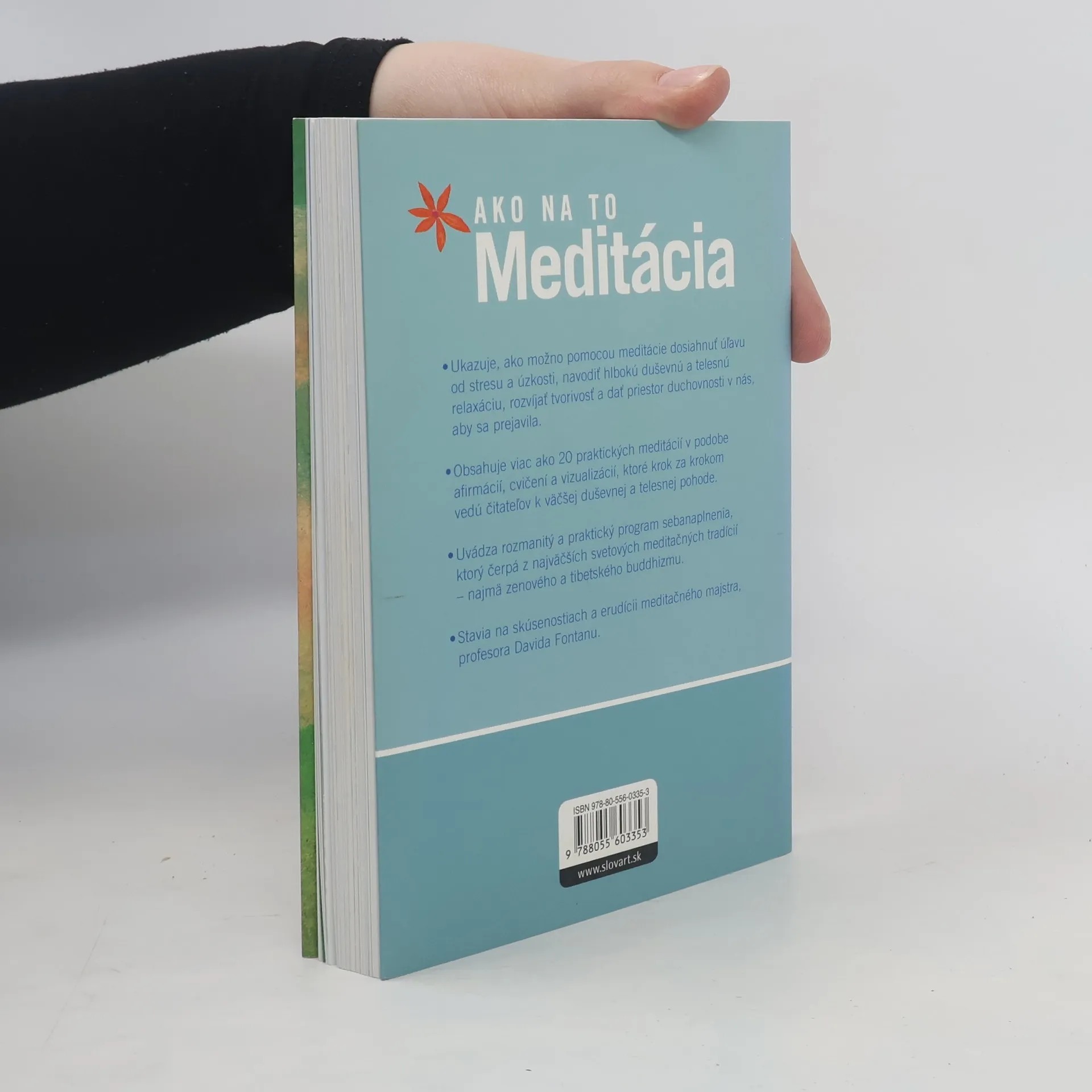 Táto praktická kniha s unikátnymi ilustráciami ukazuje, ako možno meditáciou dosiahnuť úľavu od stresu a úzkosti, navodiť hlboké uvoľnenie mysle a tela, rozvinúť tvorivosť a vytvoriť priestor na prejavenie sa našej pravej duchovnej podstaty a pocitom. Oplýva cvičeniami, vizualizáciami a afirmáciami a pomôže nám – bez ohľadu na naše momentálne rozpoloženie či potreby – dosiahnuť súlad tela a duše. Na základe svojich 25-ročných skúseností majster meditácie David Fontana prevedie čitateľov po ceste seba objavovania a napokon aj seba naplnenia. Vysvetľuje, ako začať meditovať vo vhodnom rozpoložení mysle, za vhodných okolností a so správnymi očakávaniami. Rozoberá veľké tradičné školy meditácie, od zen buddhistickej až po taoistickú. Jeho eklektické podanie sa stáva základom praktického programu na dosiahnutie vnútorného mieru. Keď raz s meditovaním začneme, stane sa celoživotným základom bohatého a naplneného života.