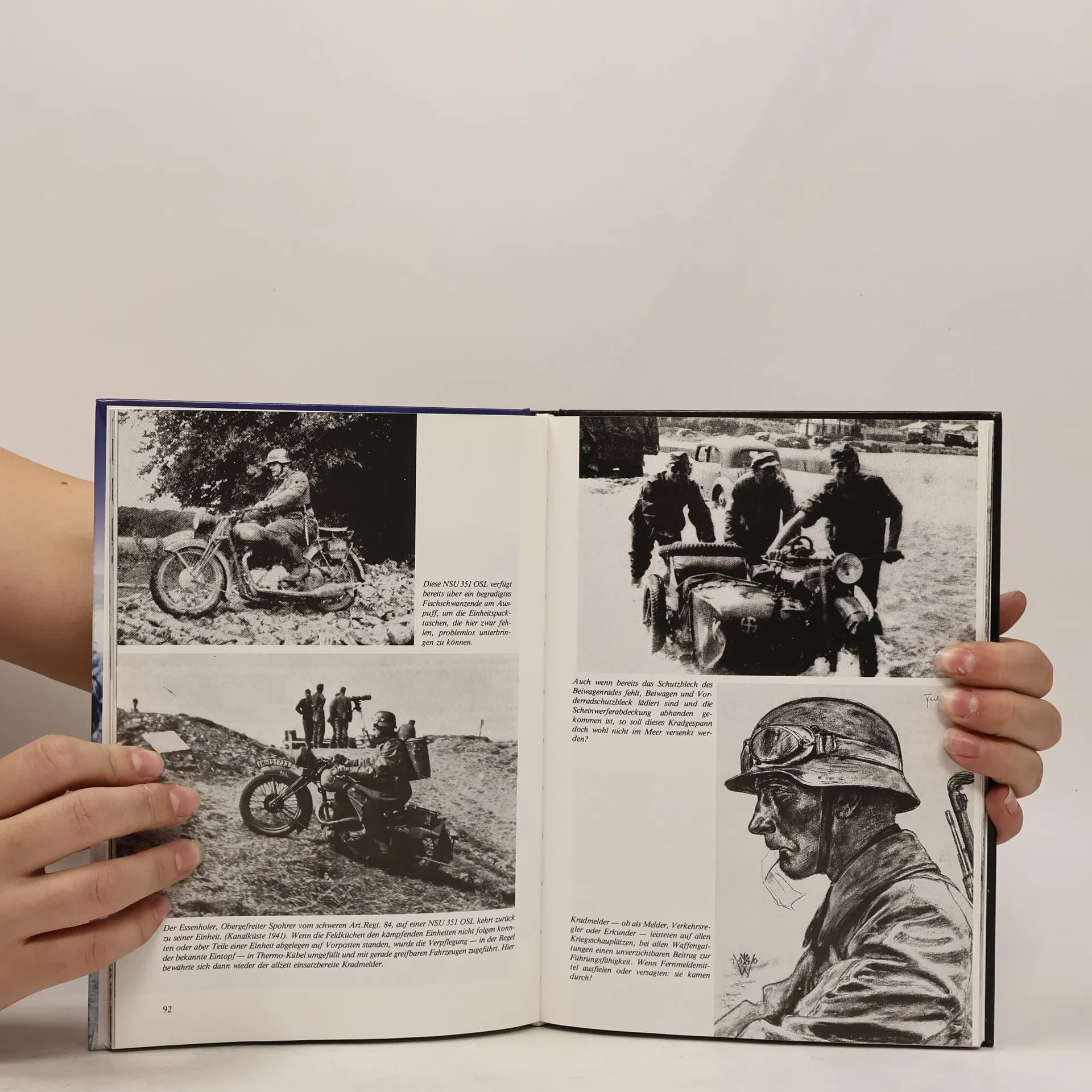 Eine Fülle von historischen Daten, Fotos und Dokumenten, die Geschichtsinteressierten einen tiefen Einblick in den Kriegsalltag der Kradfahrer im Zweiten Weltkrieg geben, wurde von Autor Horst Hinrichsen für diesen Bildband zusammengetragen.§Ob als Melder, Verkehrsregler oder Erkunder - die Kradmelder waren in der Gefechtsführung ein wichtiges Einsatzmittel, von dem nicht selten das Leben einer ganzen Kampfeinheit abhing. Wenn Fernmeldemittel fehlten oder zerstört waren, wurde der entscheidende Befehl oft im letzten Moment von einem Kradmelder überbracht. Guter Orientierungssinn, die Fähigkeit militärische Karten schnell lesen zu können und großes fahrerisches Geschick waren die Hauptanforderungen an den Kradmelder. Zu Handstreichaufgaben, Aufklärungs- und Flankeneinsätzen wurden die Kradschützen herangezogen. Zahlreiche Aufnahmen von der militärischen Kradausbildung - insbesondere der Gespanne - und von der drillmäßigen Gefechtsausbildung der Kradschützen aus der Vorkriegszeit, geben einen realistischen Eindruck von Härte und Umfang der Ausbildung.§Anhand von über 200 Einsatzfotos wird das Leben dieser Soldaten im Felde auf Ihren ungeschützten Krädern dokumentiert. Bilder von Wehrpflichtigen mit ihren requirierten zivilen Motorrädern, von Einsatzkrädern aus den 30er Jahren, von Beutemaschinen und den legendären Gespannen BMW R 75 und Zündapp KS 750 geben einen Überblick über die Typenvielfalt der eingesetzten Kräder.