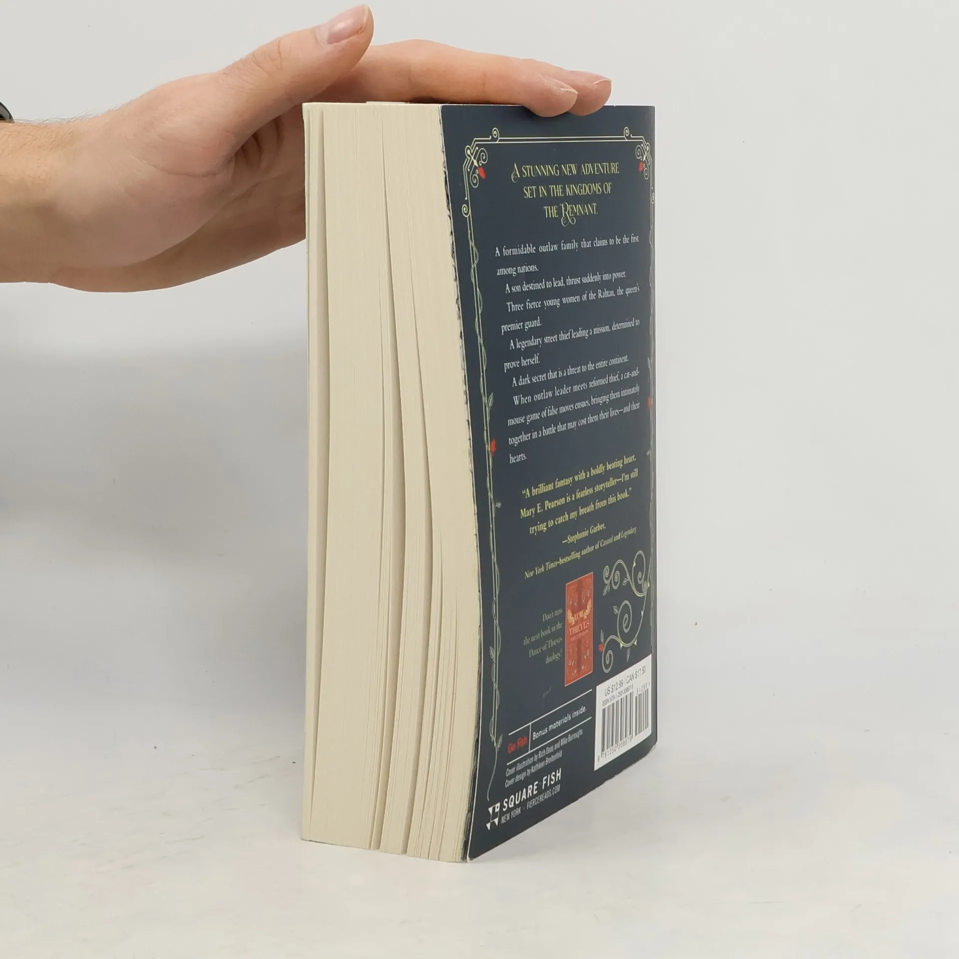 Mary E. Pearson's Dance of Thieves is a new YA novel in the New York Times bestselling Remnant Chronicles universe, in which a reformed thief and the young leader of an outlaw dynasty lock wits in a battle that may cost them their lives—and their hearts.When the patriarch of the Ballenger empire dies, his son, Jase, becomes its new leader. Even nearby kingdoms bow to the strength of this outlaw family, who have always governed by their own rules. But a new era looms on the horizon, set in motion by a young queen, which makes her the target of the dynasty's resentment and anger.At the same time, Kazi, a legendary former street thief, is sent by the queen to investigate transgressions against the new settlements. When Kazi arrives in the forbidding land of the Ballengers, she learns that there is more to Jase than she thought. As unexpected events spiral out of their control, bringing them intimately together, they continue to play a cat and mouse game of false moves and motives in order to fulfill their own secret missions.