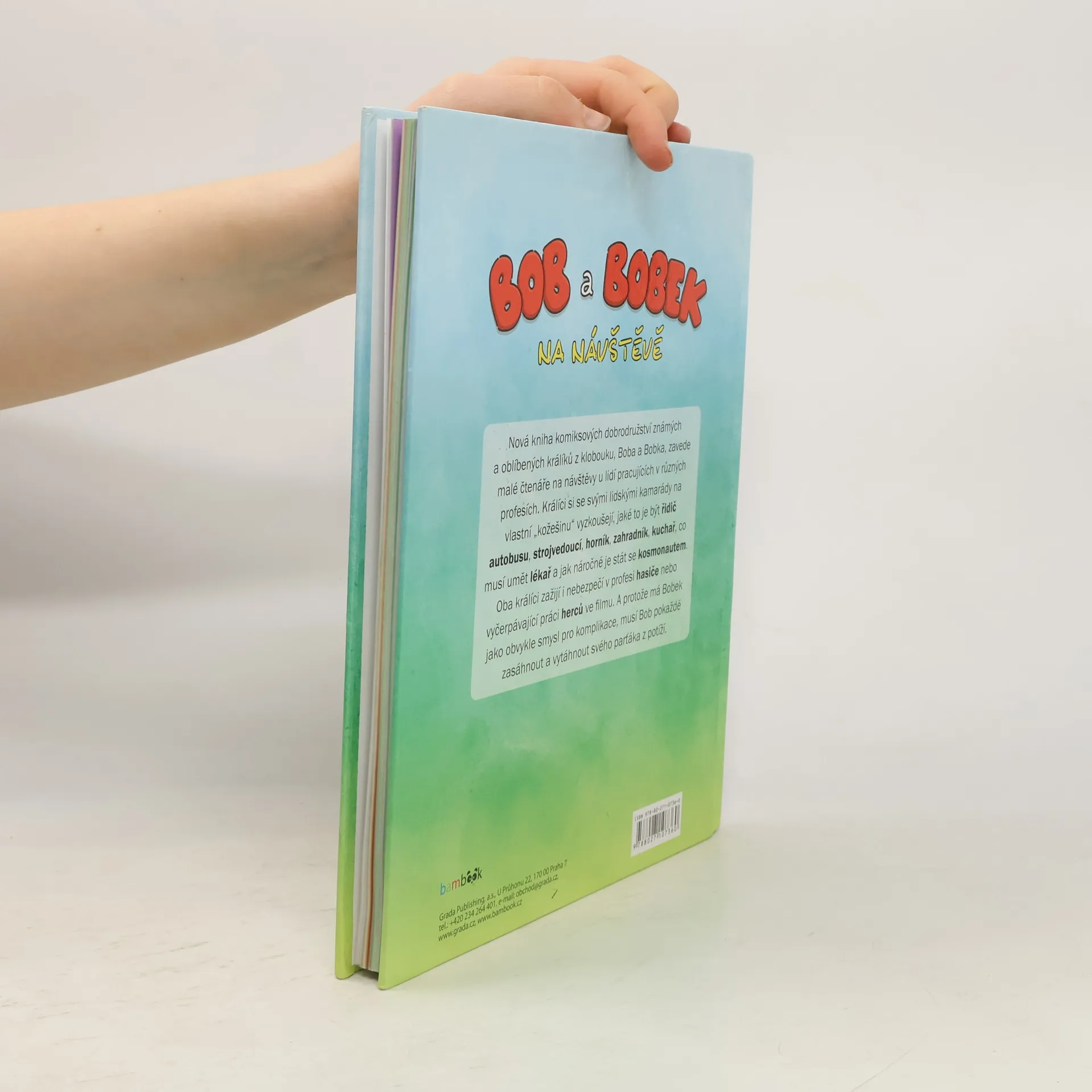Nová kniha komiksových dobrodružství známých a oblíbených králíků z klobouku, Boba a Bobka, zavede malé čtenáře na návštěvy u lidí pracujících v různých profesích. Králíci si se svými lidskými kamarády na vlastní „kožešinu“ vyzkoušejí, jaké to je být řidič autobusu, strojvedoucí, zahradník, kuchař, co musí umět lékař a jak náročné je stát se kosmonautem. Oba králíci zažijí i nebezpečí v profesi hasiče nebo vyčerpávající práci herců ve filmu. Každé ráno se Bobkovi nechce vstávat, a tak ho Bob musí motivovat stále novými a novými zážitky. A protože má Bobek jako obvykle smysl pro komplikace, musí Bob pokaždé zasáhnout a vytáhnout svého parťáka z potíží.