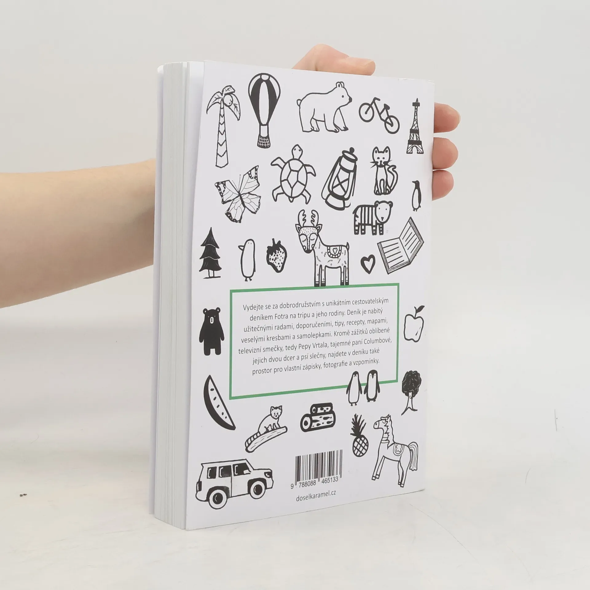 Vydejte se za dobrodružstvím s unikátním cestovatelským deníkem Fotra na tripu a jeho rodiny. Deník je nabitý užitečnými radami, doporučeními, tipy, recepty, mapami, veselými kresbami a samolepkami. Speciální checklisty vám pomohou zorganizovat každý výlet nebo cestu. Kromě zážitků oblíbené televizní smečky, tedy Pepy Vrtala, tajemné paní Columbové, jejich dvou dcer a psí slečny, najdete v deníku také prostor pro vlastní zápisky, fotografie a vzpomínky. Ať už objevujete blízké okolí, nebo se vydáváte daleko od domova, v tomto deníku budete mít dost místa pro všechny vaše dobrodružné eskapády a příběhy.