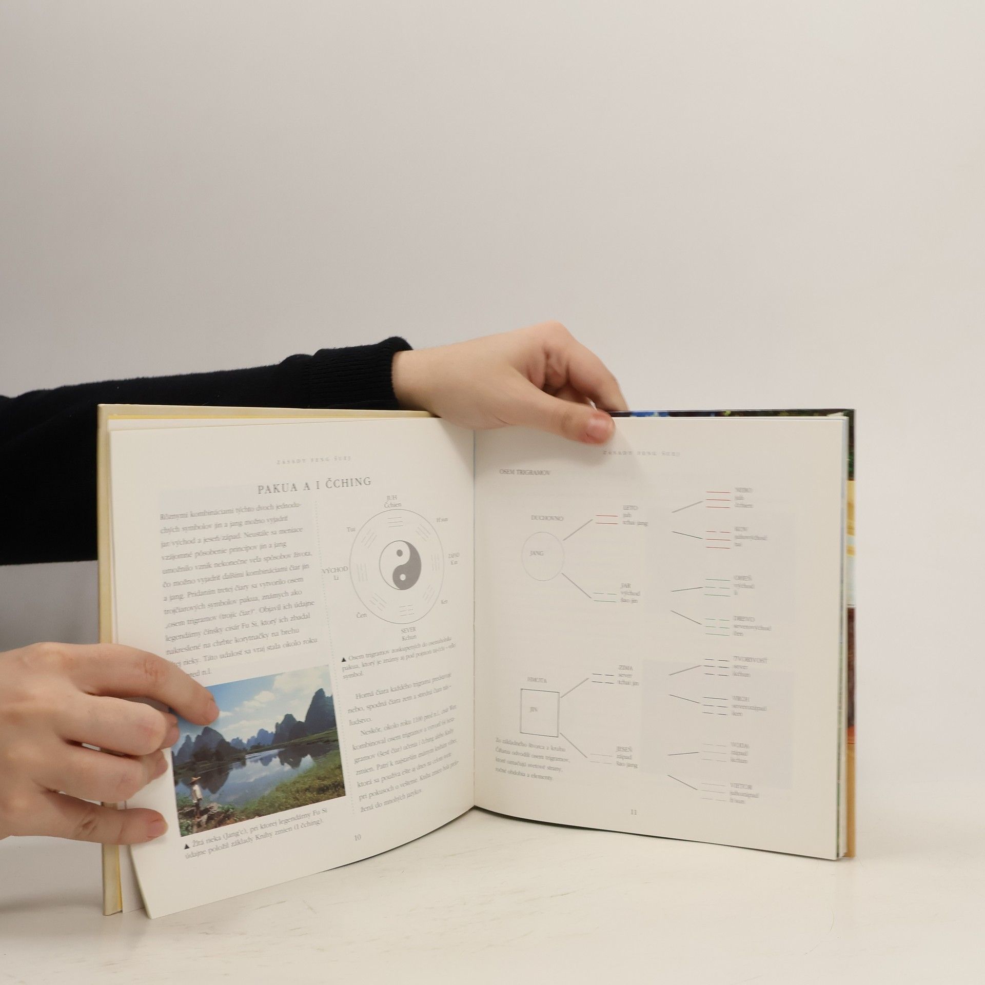Praktický návod, jak se naučit čínskému umění žít v souladu s přírodou, tištěno na křídovém papíře, doplněno barevnými fotografiemi.