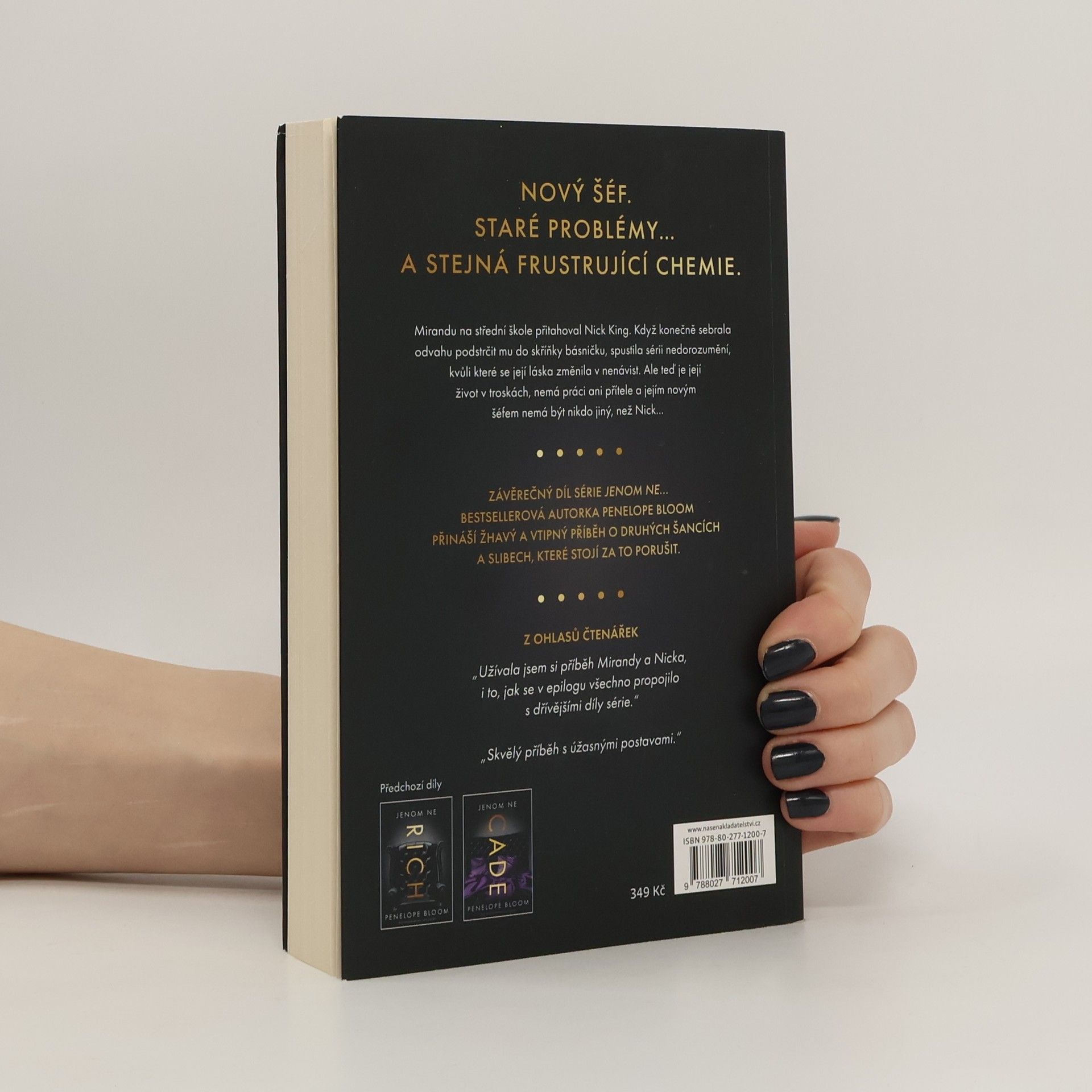 Před sedmi lety jsem slavnostně přísahala, že už nikdy nebudu chodit s Nickem Kingem. Vážně, už nikdy. Teď s ním mám pracovat – a ne, navzdory tomu, že na mě vrhá pohledy, jako by mě chtěl svléct do naha, pro mě nebude nic než šéf. Ale jak lépe dokázat, že už mě nezajímá? Na střední škole jsem byla až moc nadaná šprtka a do Nicka jsem byla beznadějně zamilovaná. Dokonce jsem si zalaminovala jeden vzkaz, který mi poslal. Tehdy jsem měla slabost pro laminovačky, ale to je vedlejší. Teď je mojí jedinou šancí vrátit svůj život do původních kolejí připlazit se k němu po kolenou a modlit se, že ten pohovor zvládnu na jedničku. Možná bych se měla i modlit proto, aby to byla jediná věc, která se odehraje v jeho kanceláři – zvláště když vypadá, že by si mě nejradši dal k večeři. Nick mi už jednou zlomil srdce. Ale to nevadí, pořád jsem dost zručná s laminovačkou. Možná bych s ní mohla zatavit i své city, než tu práci přijmu.