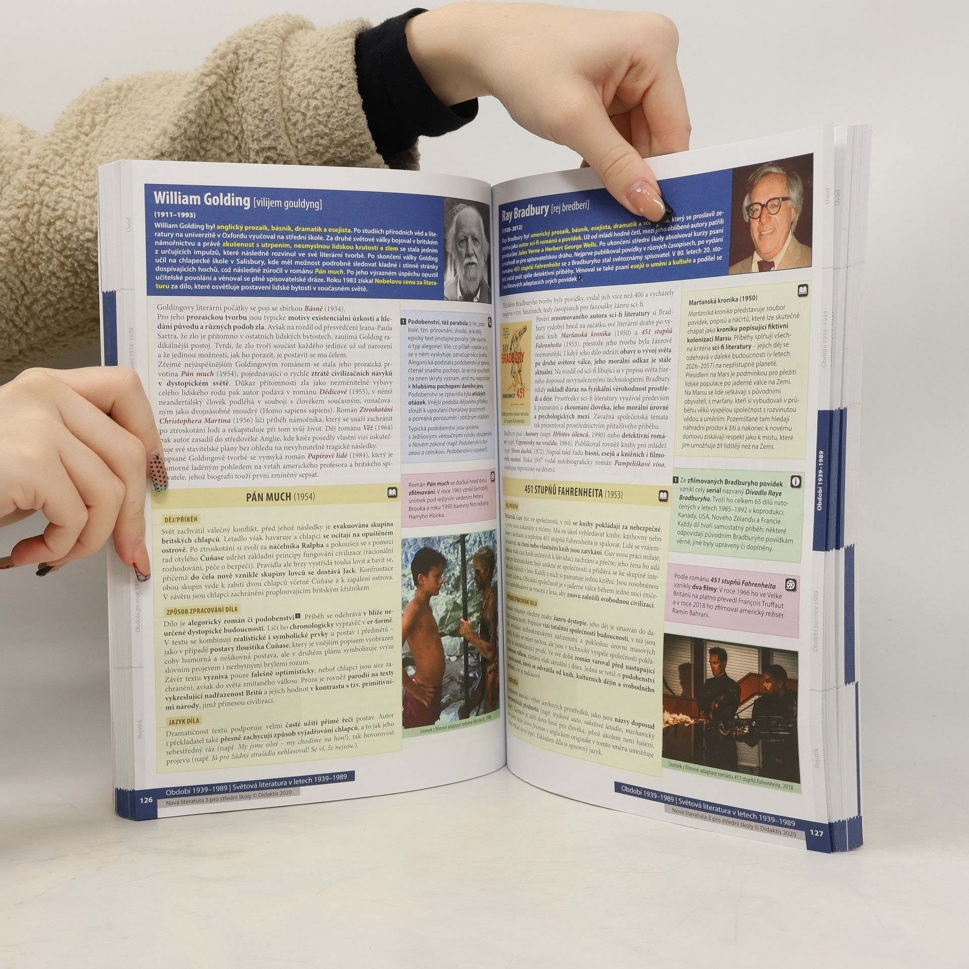 Učebnice obsahuje výklad k literatuře od roku 1914 po současnost. V chronologickém sledu seznamuje žáky s vývojem světové a české literatury, a to ve třech celcích (Období 1914–1939, Období 1939–1989 a Období po roce 1989), z nichž každý je tvořen dvěma či třemi kapitolami.