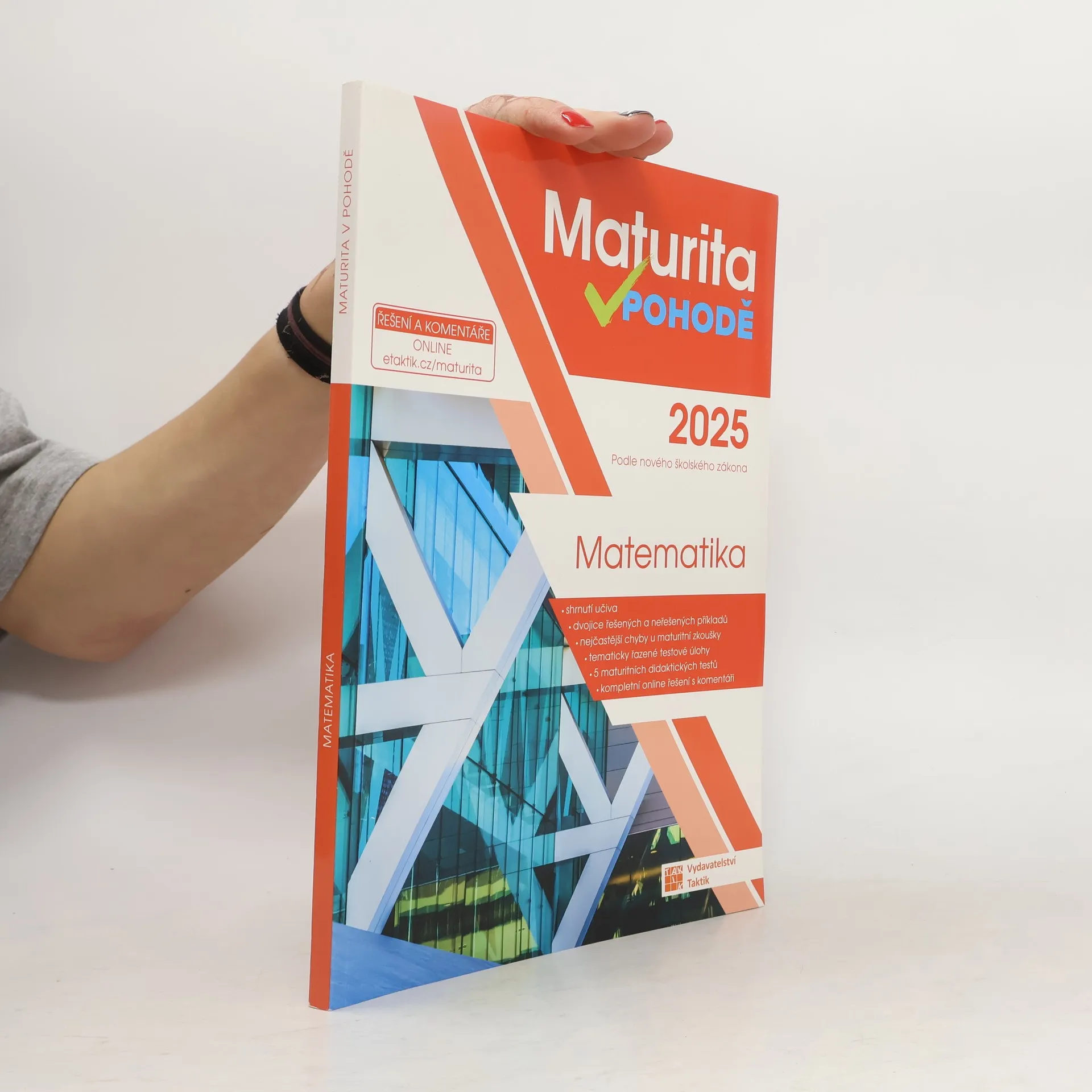 Důležitou zkoušku života hravě zvládneš! Cvičebnice Maturita v pohodě – matematika obsahuje materiály pro komplexní přípravu na jednotou maturitní zkoušku (MZ). Příručka obsahuje 9 testovacích okruhů. Každý okruh se skládá ze shrnutí učiva, aby si žák mohl zopakovat potřebnou látku, dvojic řešených a neřešených úloh, kde si žák může prohlédnout vyřešené a podle nich vypočítat ty neřešené, a tím se seznámit s typologií úloh v didaktickém testu. Následují vypracované úlohy, ve kterých se v minulých letech nejvíce chybovalo s radami, jak se chybám vyhnout. Okruh uzavírají úlohy k procvičení. Nakonec si své znalosti muže žák procvičit pomocí 5 ukázkových didaktických testu i s odpovědními archy. K cvičebnici jsou k dispozici řešení online. Vypracovaná řešení a online materiály pro Maturitu v pohodě získáte po zaregistrování a zadání přístupového kódu na http://www.vpohode.cz/maturita/.