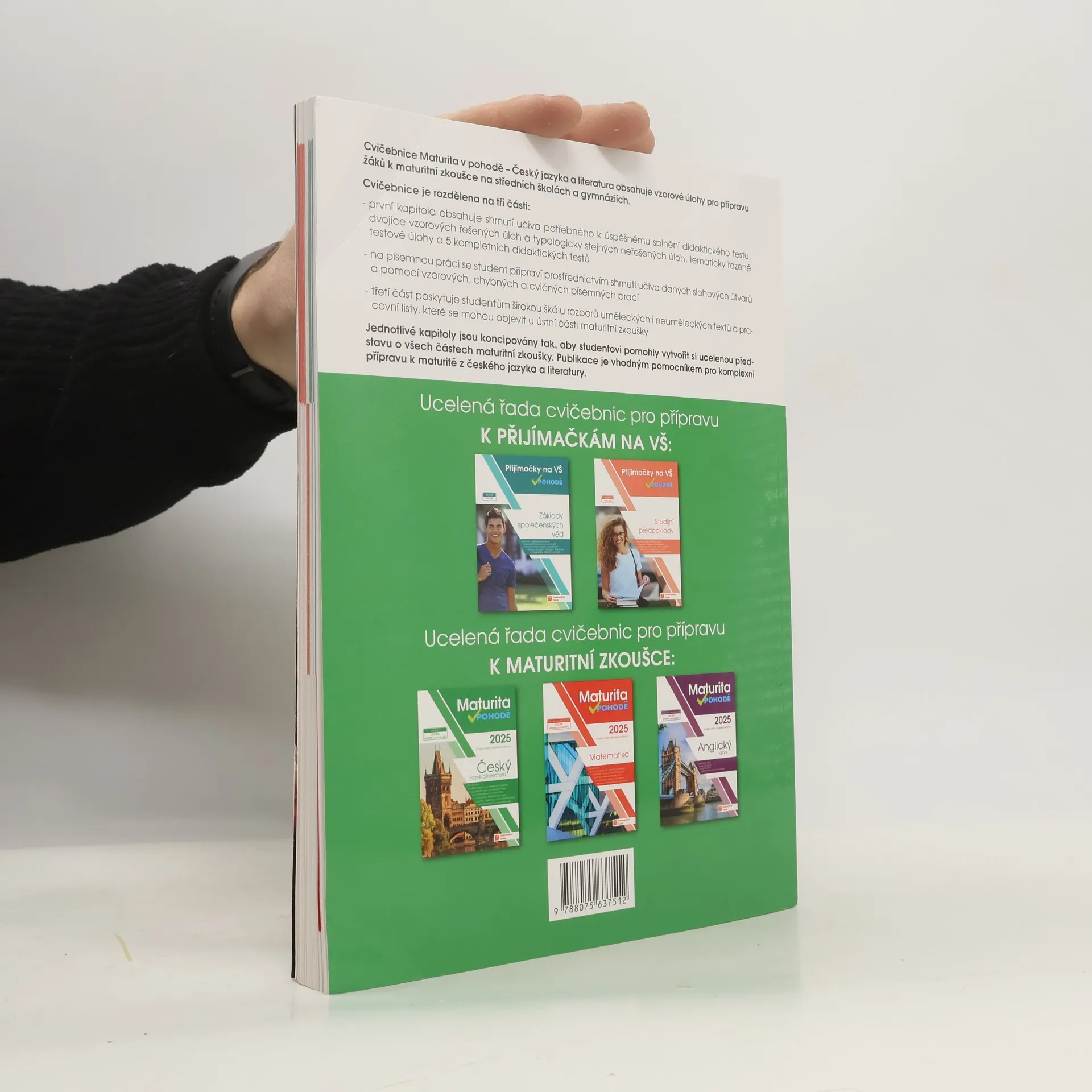 Důležitou zkoušku života hravě zvládneš! Cílem cvičebnice Maturita v pohodě – český jazyk a literatura je poskytnout komplexní přípravu na maturitní zkoušku. Je rozdělena na tři části podle maturitní zkoušky (MZ) – Didaktický test, Písemná práce a Ústní zkouška. Materiály v příručce jsou koncipované tak, aby žákovi pomohly vytvořit si představu o tematických okruzích, typologii úloh a zadáních, které budou použity v rámci maturitní zkoušky. K cvičebnici jsou k dispozici řešení online. Vypracovaná řešení a online materiály pro Maturitu v pohodě získáte po zaregistrování a zadání přístupového kódu na http://www.vpohode.cz/maturita/.