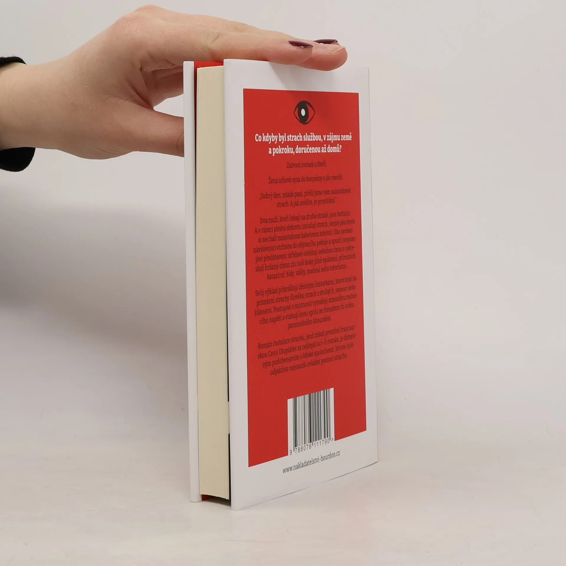 Co kdyby byl strach službou, v zájmu země a pokroku, doručenou až domů? Zazvoní zvonek u dveří. Žena schová syna do koupelny a jde otevřít. „Dobrý den, mladá paní, přišli jsme vám nainstalovat strach. A jak uvidíte, je prvotřídní.“ Dva muži, kteří čekají na druhé straně, jsou technici. A v rámci plnění dekretu instalují strach, stejně jako byste si nechali nainstalovat kabelovou televizi. Oba nezvaní návštěvníci vtrhnou do obývacího pokoje a spustí znepokojivé představení: střídavě obtěžují nebohou ženu a vykreslují hrůzný obraz zla naší doby plné epidemií, přírodních katastrof, bídy, války, mučení nebo terorismu. Svůj výklad přikrášlují děsivými historkami, které hrají na primární strachy člověka: strach z druhých, nemoci nebo šílenství. Postupně v místnosti vytvářejí atmosféru rostoucího napětí a vtahují ženu spolu se čtenářem do svého paranoidního blouznění. Román Instalace strachu, jenž získal prestižní francouzskou Cenu Utopiales za nejlepší sci–fi román, je důmyslným podobenstvím o lidské společnosti, kterou bylo odjakživa nejsnazší ovládat pomocí strachu.