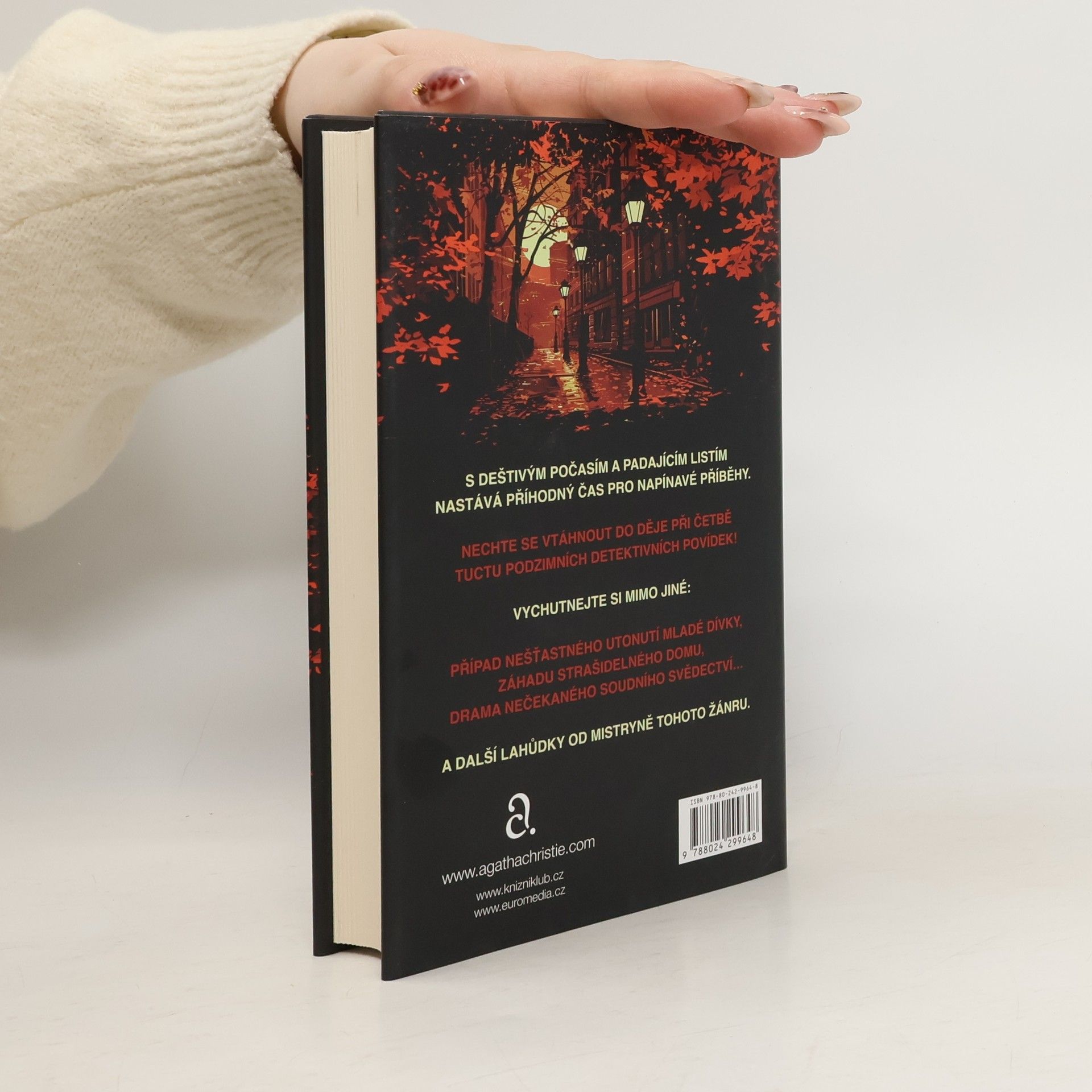 Za mlžných rán a stále ještě prohřátých večerů, v honosných sídlech i na odlehlých farmách, v městských uličkách, na pláži či v hloubi lesa – také podzimní období skýtá v povídkách Agathy Christie příležitost k napínavým příběhům. Ať už se jim snaží přijít na kloub Hercule Poirot, slečna Marplová, záhadný pan Quin nebo Tommy s Pentličkou, znovu nabízejí pestrou směsici chytře vymyšlených zápletek a ještě chytřejších – a o to nečekanějších rozuzlení, o něž se postarala spisovatelka – ne náhodou – nazývaná královnou zločinu.