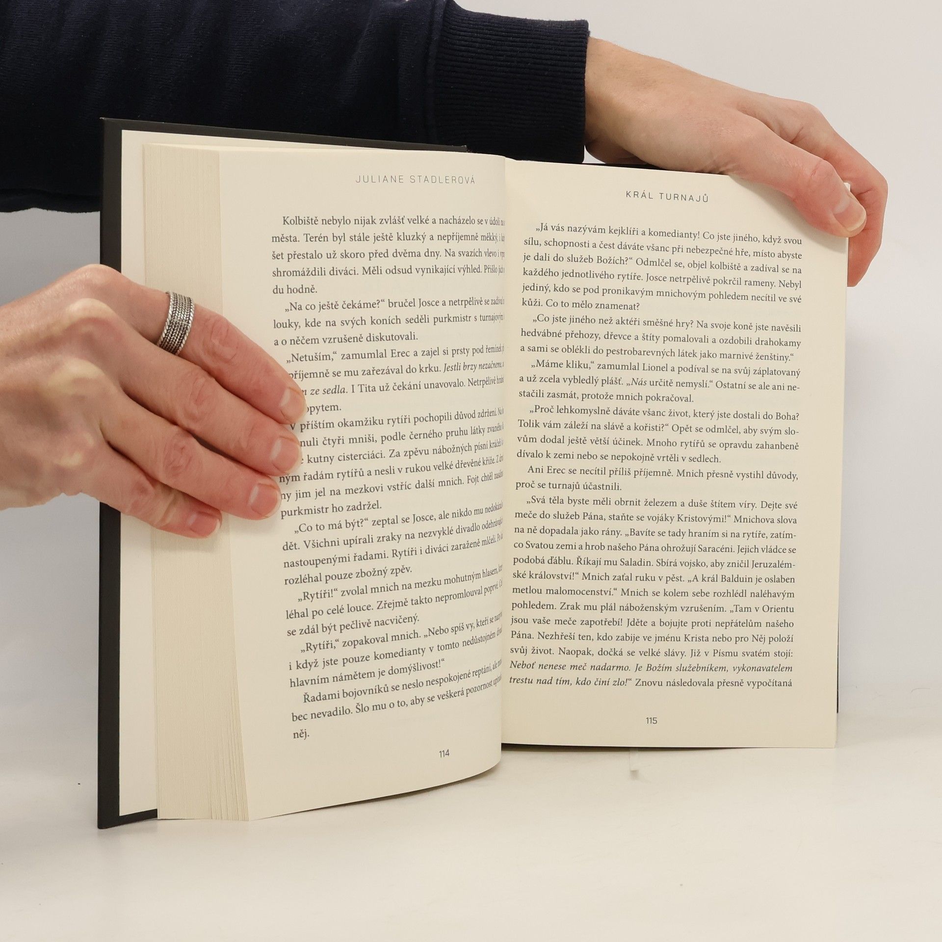 V pořadí druhý román Juliane Stadlerové lze směle nazvat středověkým eposem. Děj se odehrává necelých deset let před událostmi v historické fresce Nebeská koruna a opět přivádí na scénu Richarda Lví srdce, který ale ještě není anglickým králem. Francie roku 1181: Mladý, schopný a mimořádně odvážný rytíř Erec se postavil do čela skupinky potulných rytířů a protlouká se s nimi po venkovských turnajích. Díky svému bojovému umu a štěstí se stává členem nejúspěšnější turnajové družiny své doby. Na dvoře anglického následníka trůnu se znovu setkává se záhadnou Genovefou, a tak začíná příběh osudové lásky, která však musí zůstat utajena. Genovefa už totiž patří jinému. Erecovi se splnil životní sen, stal se jedním z rytířů královy družiny. Netuší však, že se brzy stane hračkou v rukou nejmocnějších intrikánů své doby. A půjde mu o krk... Nakladatelská anotace.