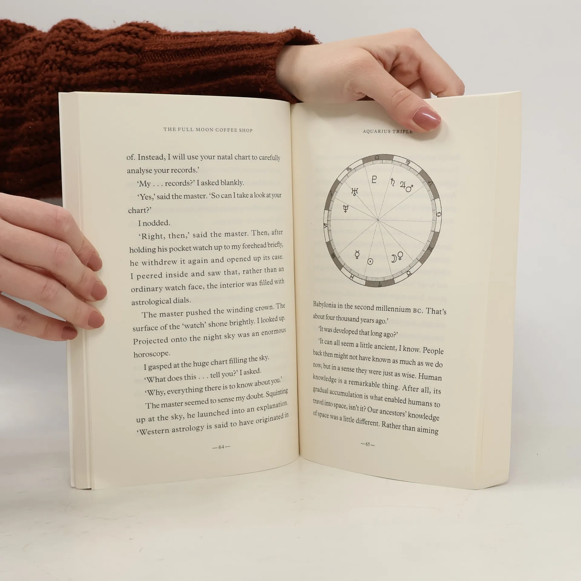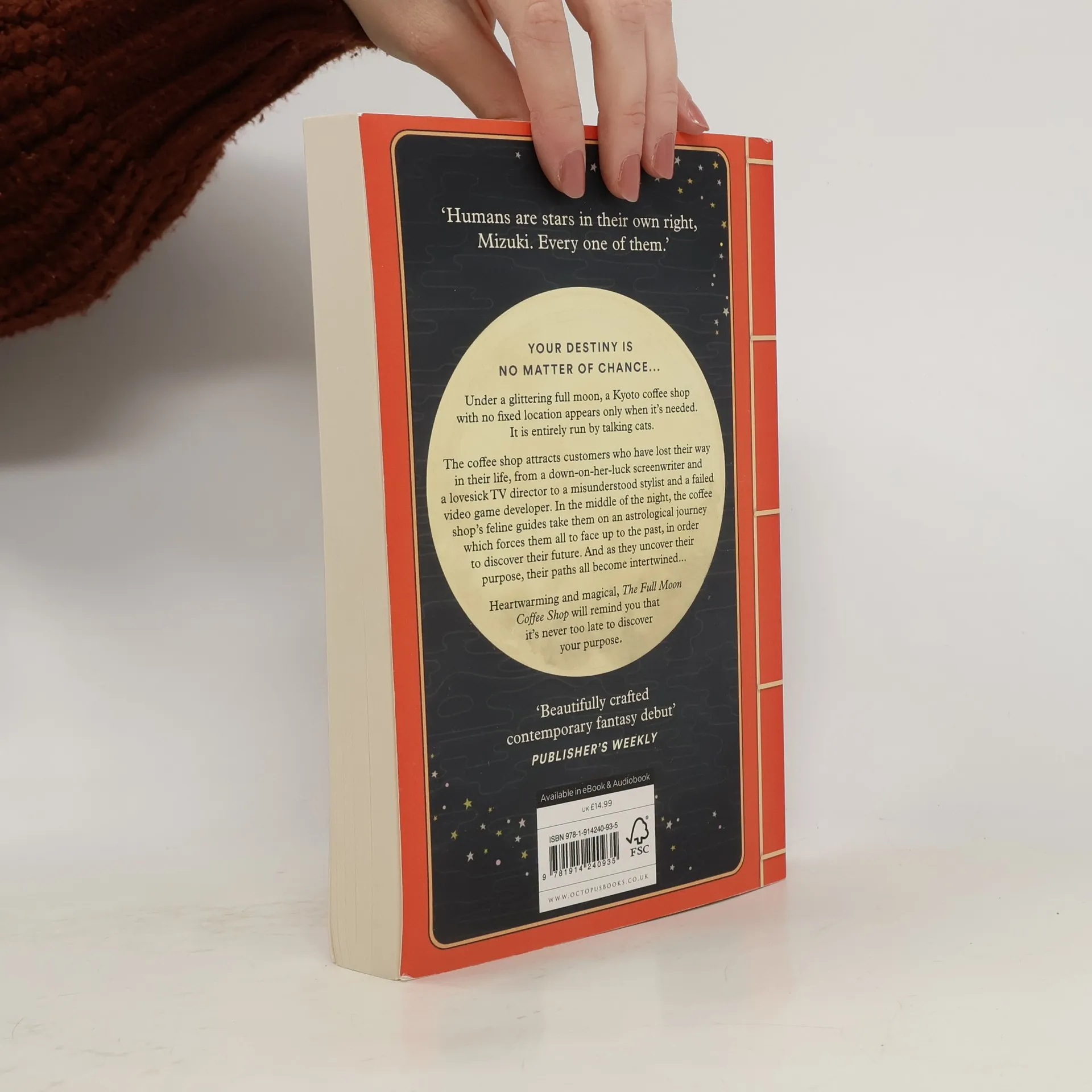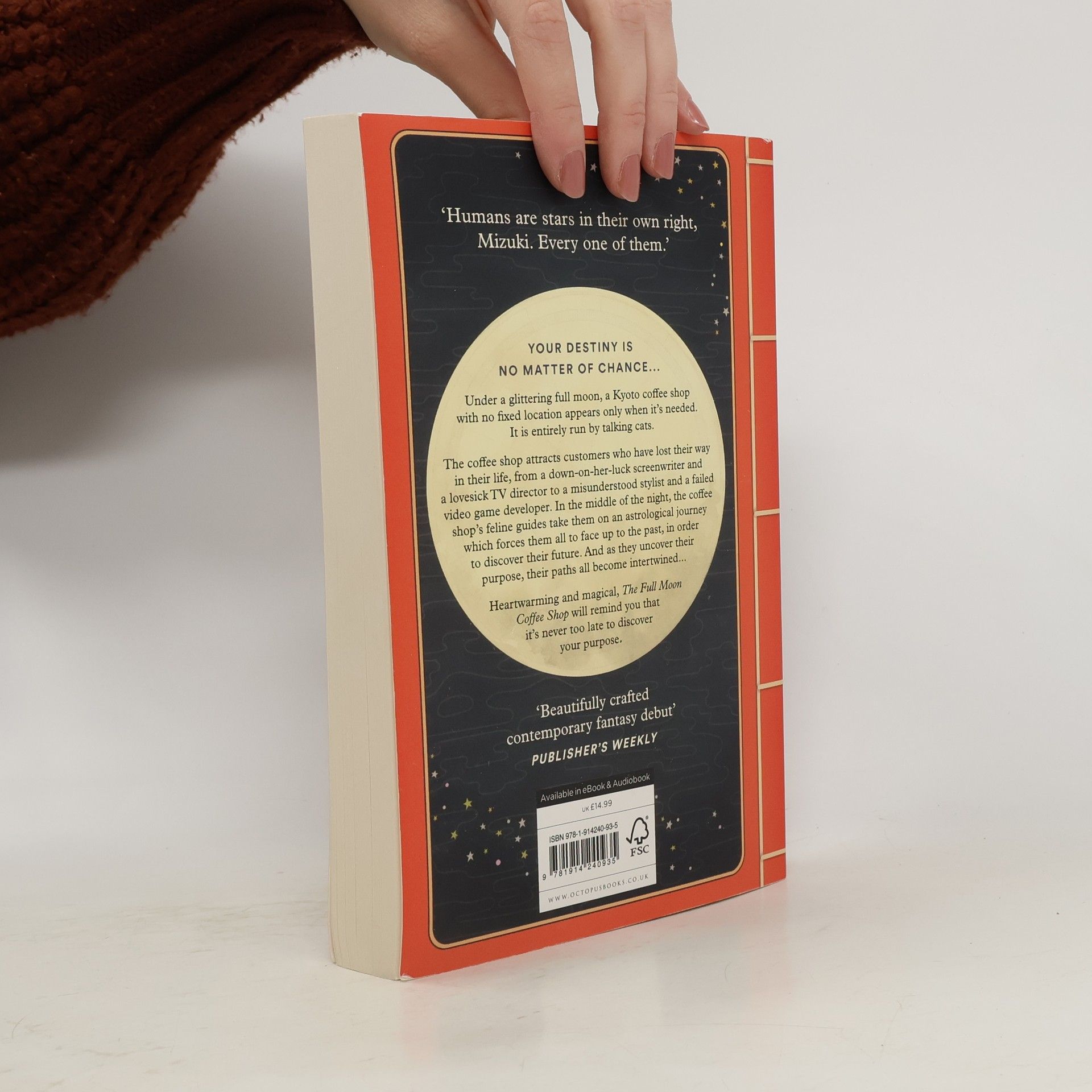 Based on the Japanese myth of cats returning favours to humans who are kind to them, The Full Moon Coffee Shop is the name of a peculiar cake cafe that is run by talking cats, which has no fixed location and instead materialises unpredictably on the night of a full moon. The protagonists of this story - a successful female scriptwriter in crisis, a heartbroken tv director, and two male entrepreneurs - all end up there in the middle of the night, in a semi- dream-like state, and receive life-changing advice on love, work, and relationships from a charismatic tortoiseshell cat who interprets his guests' astrological chart.The Western horoscope comes into play, as well as the life phases, one for each planet, that guide what lessons we have or haven't allowed ourselves to learn. Meanwhile, the customers are served a selection of drinks and sweet treats tailored perfectly to their needs: a Lunar Chocolate Fondant for Aching Hearts, a Planetary Ice Affogato, an Ice Coffee with Sunrise Syrup, or a Bitter Coffee for Mature Souls.