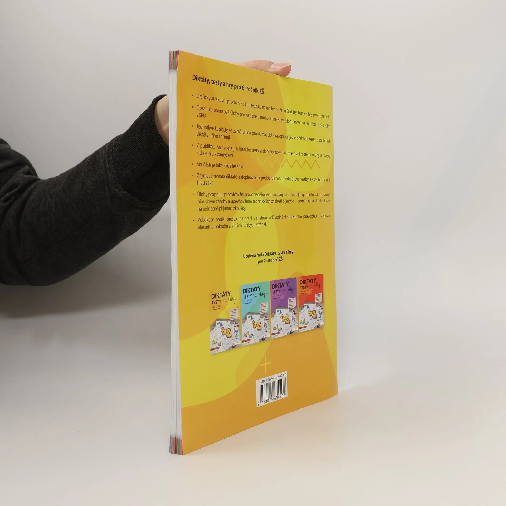 Diktáty, testy a hry jsou součástí ucelené řady učebnic a pracovních sešitů Hravá čeština pro výuku českého jazyka na 2. stupni základních škol. Jedná se o moderní publikaci v atraktivním grafickém zpracování, která je doplněna o verzi diktátů pro žáky se SPU a bonusové úlohy pro nadané a motivované žáky. Publikace nabízí prostor pro sebehodnocení, opravu i sledování vlastního pokroku. Zajímavá a různorodá témata diktátů rozvíjejí všeobecný přehled žáků a mezipředmětové vazby. Vedle klasických diktátů a doplňovacích cvičení publikace obsahuje i tvořivé úlohy a cvičení, která se zaměřují na přípravu k přijímacím zkouškám na SŠ.