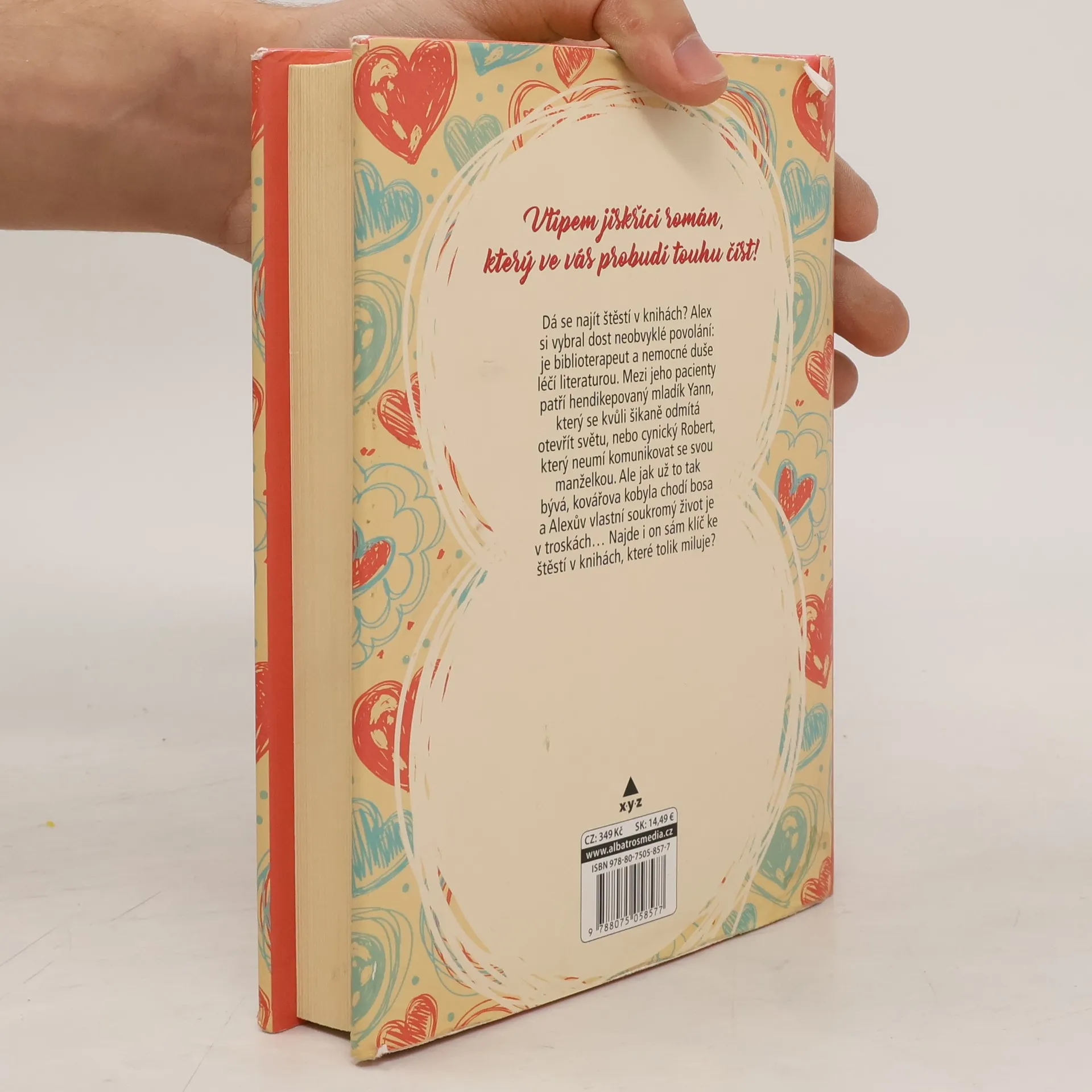 Dá se najít štěstí v knihách? Alex si vybral dost neobvyklé povolání: je biblioterapeut a nemocné duše léčí literaturou. Mezi jeho pacienty patří hendikepovaný mladík Yann, který se kvůli šikaně odmítá otevřít světu, nebo cynický Robert, který neumí komunikovat se svou manželkou. Ale jak už to tak bývá, kovářova kobyla chodí bosa a Alexův vlastní soukromý život je v troskách… Najde i on sám klíč ke štěstí v knihách, které tolik miluje?