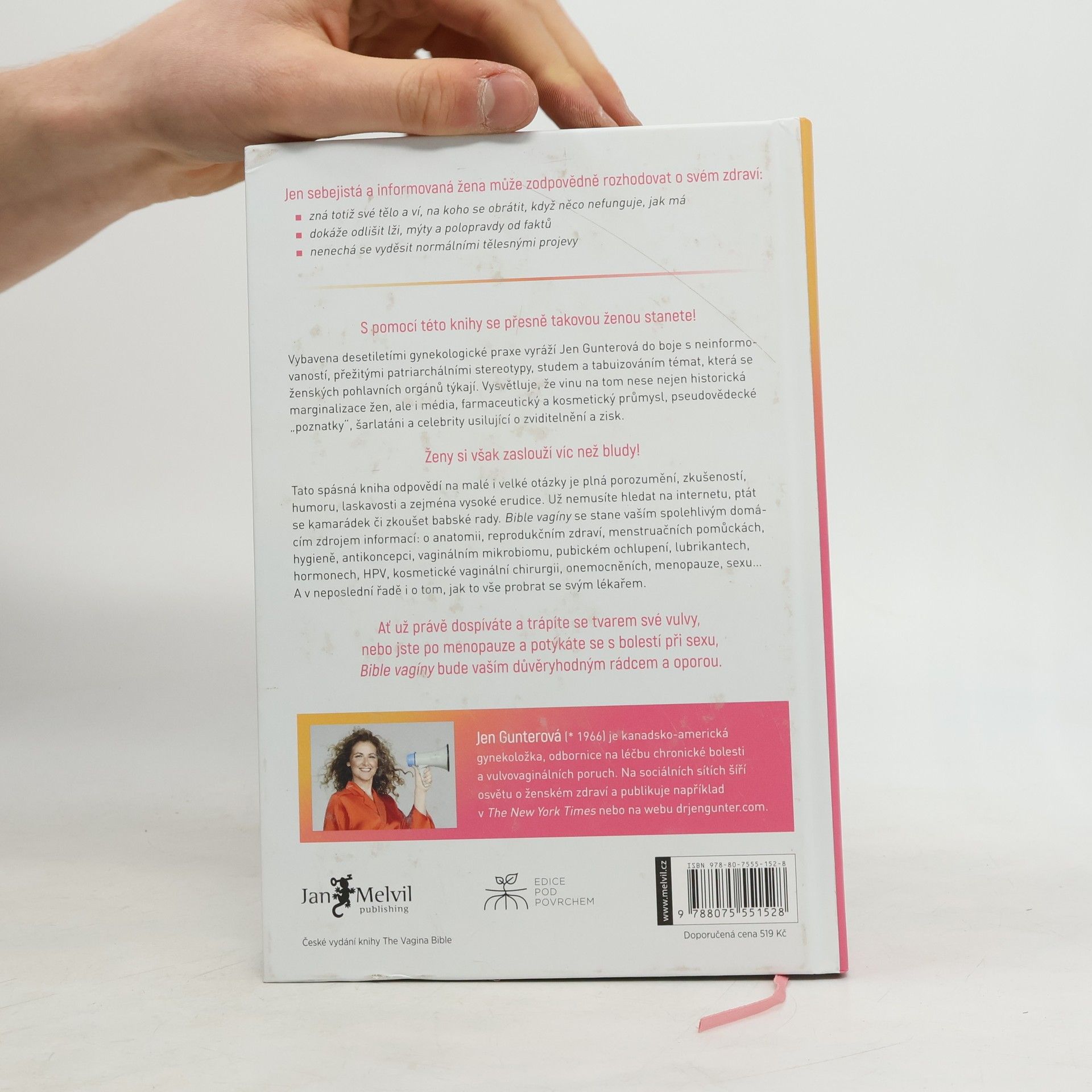 Průvodce životem s vulvou a pochvou bez mýtů a předsudků. Sebejistá a informovaná žena může zodpovědně rozhodovat o svém zdraví, zná své tělo a ví, na koho se obrátit, když něco nefunguje, jak má. S pomocí této knihy se přesně takovou ženou stanete! Autorka, s desetiletími gynekologické praxe, se vydává do boje proti neinformovanosti, patriarchálním stereotypům, studu a tabuizování témat týkajících se ženských pohlavních orgánů. Vysvětluje, že vinu nese historická marginalizace žen, média, farmaceutický a kosmetický průmysl, pseudovědecké „poznatky“, šarlatáni a celebrity usilující o zisk. Ženy si zaslouží více než bludy! Tato kniha odpovídá na malé i velké otázky a je plná porozumění, zkušeností, humoru, laskavosti a vysoké erudice. Už nemusíte hledat na internetu, ptát se kamarádek či zkoušet babské rady. Kniha se stane vaším spolehlivým zdrojem informací o anatomii, reprodukčním zdraví, menstruačních pomůckách, hygieně, antikoncepci, vaginálním mikrobiomu, pubickém ochlupení, lubrikantech, hormonech, HPV viru, kosmetické vaginální chirurgii, onemocněních, menopauze a sexu. Ať už dospíváte a trápíte se tvarem své vulvy, nebo jste po menopauze a potýkáte se s bolestí při sexu, tato kniha bude vaším důvěryhodným rádcem a oporou.