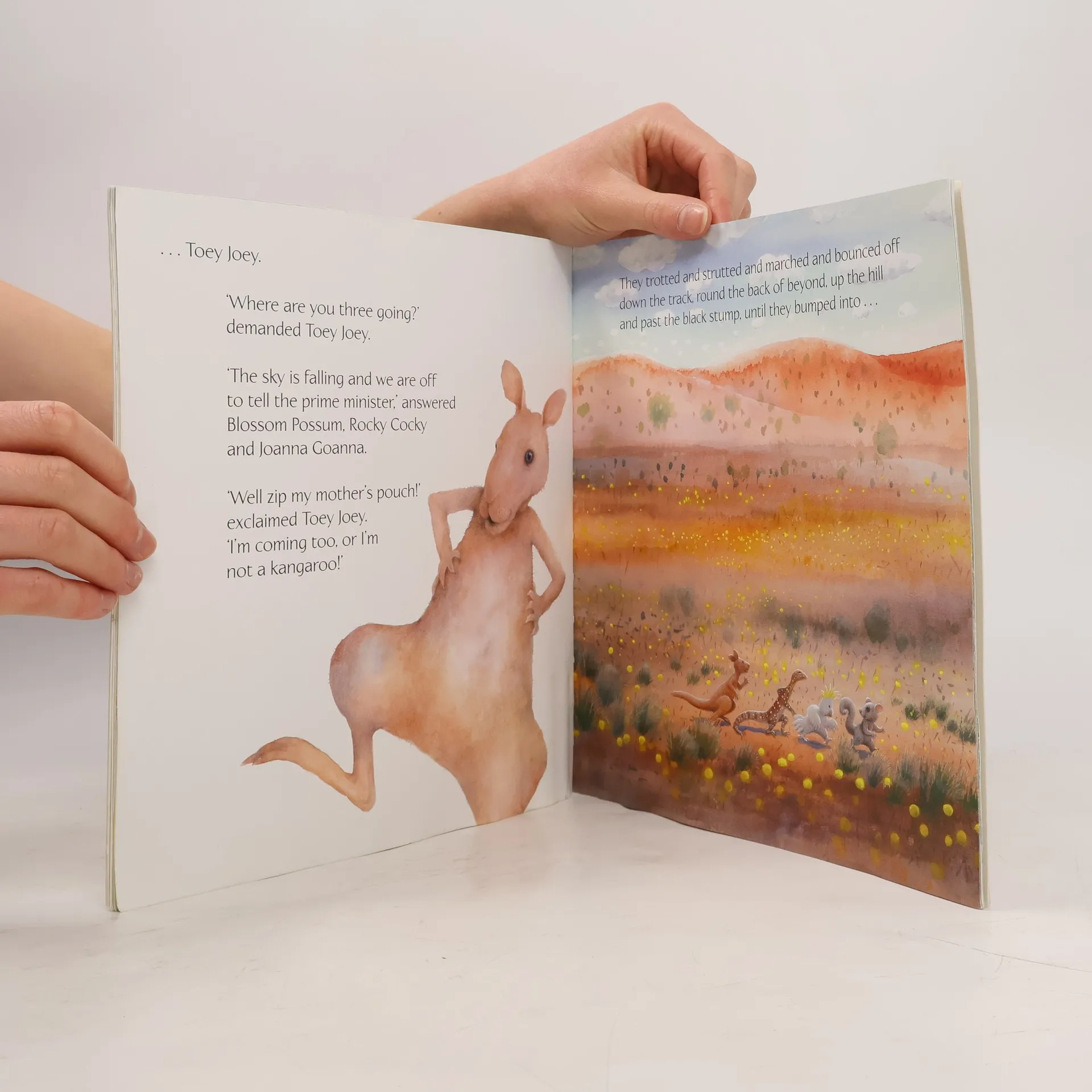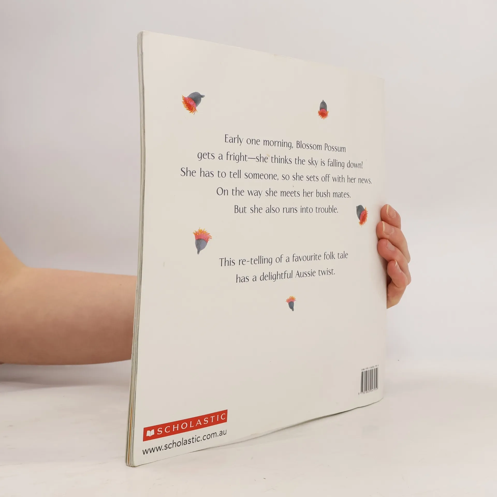 'Colour my beak blue, that's a risky business if you're not a cockatoo,' squawked Rocky Cocky. 'You'll need a bodyguard.' They trotted and strutted off down the track, round the back of beyong, up the hill and past the black stump, until they bumped into Joanna Goanna. Early one morning, Blossom Possum gets such a fright she thinks the sky is falling down! She has to tell someone, so she sets off with her news. On the way she meets her bush mates. But she also runs into trouble. This retelling of a favourite folktale has a delightful Aussie twist and a refreshingly positive ending. The author has used typically Australian animals to create a cast of quirky characters. Rocky Cocky is a cheeky cockatoo, Echo Gecko is an old hippie lizard, and Toey Joey is a lively young kangaroo.