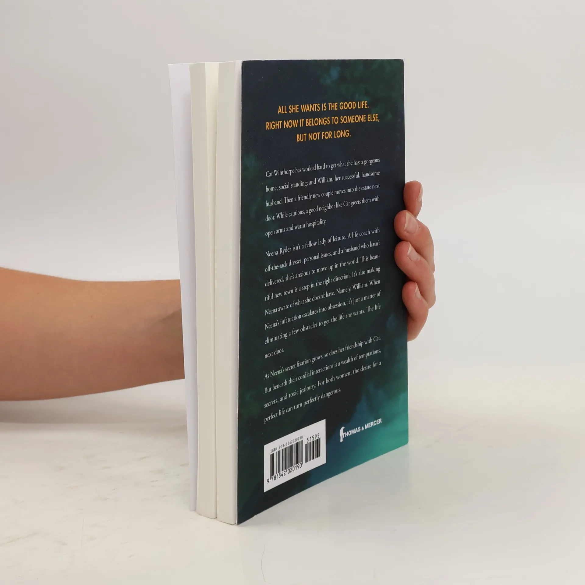 Welcome to the neighborhood. Watch your husband, watch your friends, and watch your back. Cat Winthorpe has worked hard to get what she has: a gorgeous home; social standing; and William, her successful, handsome husband. Then a friendly new couple moves into the estate next door. While cautious, a good neighbor like Cat greets them with open arms and warm hospitality. Neena Ryder isn't a fellow lady of leisure. A life coach with off-the-rack dresses, personal issues, and a husband who hasn't delivered, she's anxious to move up in the world. This beautiful new town is a step in the right direction. It's also making Neena aware of what she doesn't have. Namely, William. When Neena's infatuation escalates into obsession, it's just a matter of eliminating a few obstacles to get the life she wants. The life next door. As Neena's secret fixation grows, so does her friendship with Cat. But beneath their cordial interactions is a wealth of temptations, secrets, and toxic jealousy. For both women, the desire for a perfect life can turn perfectly dangerous.