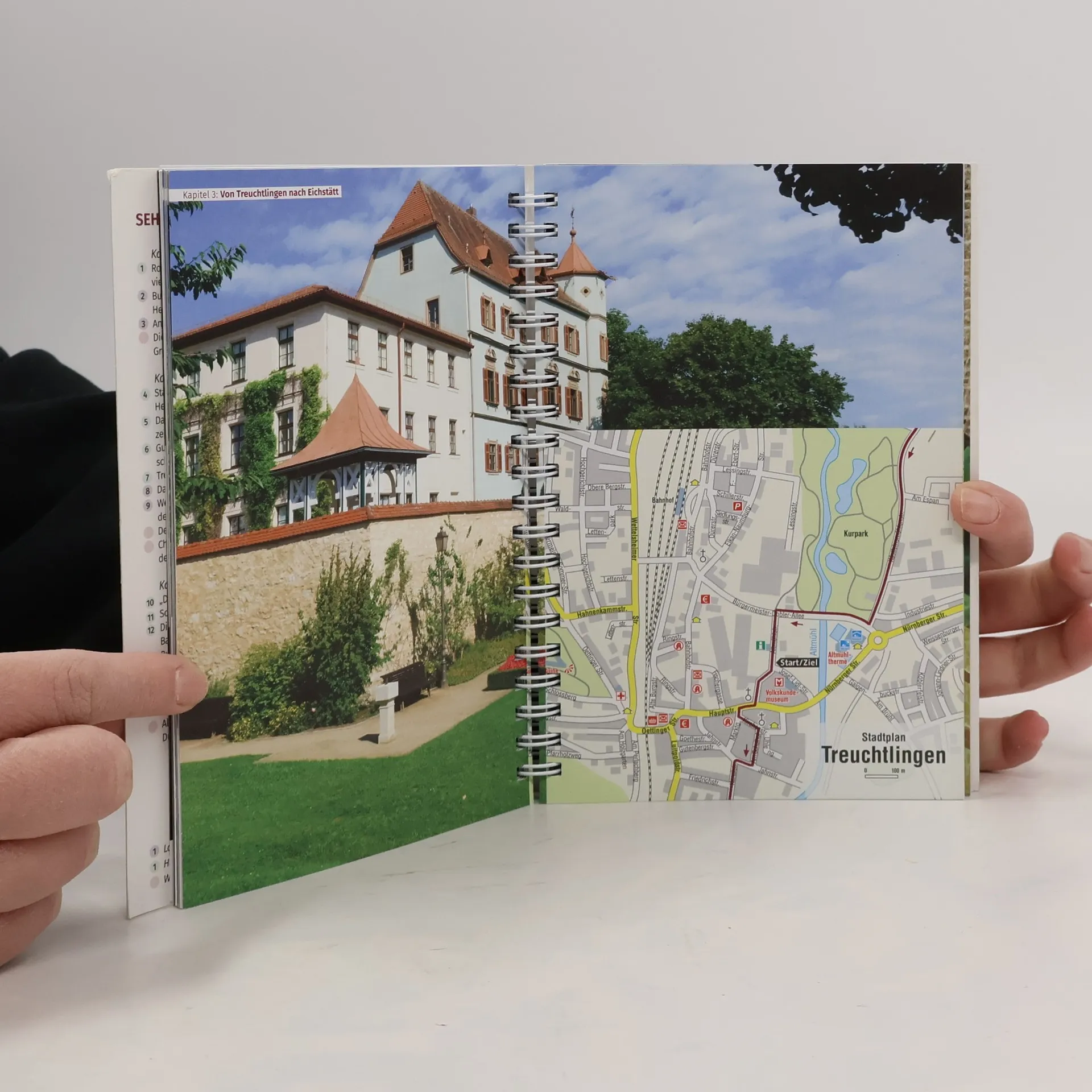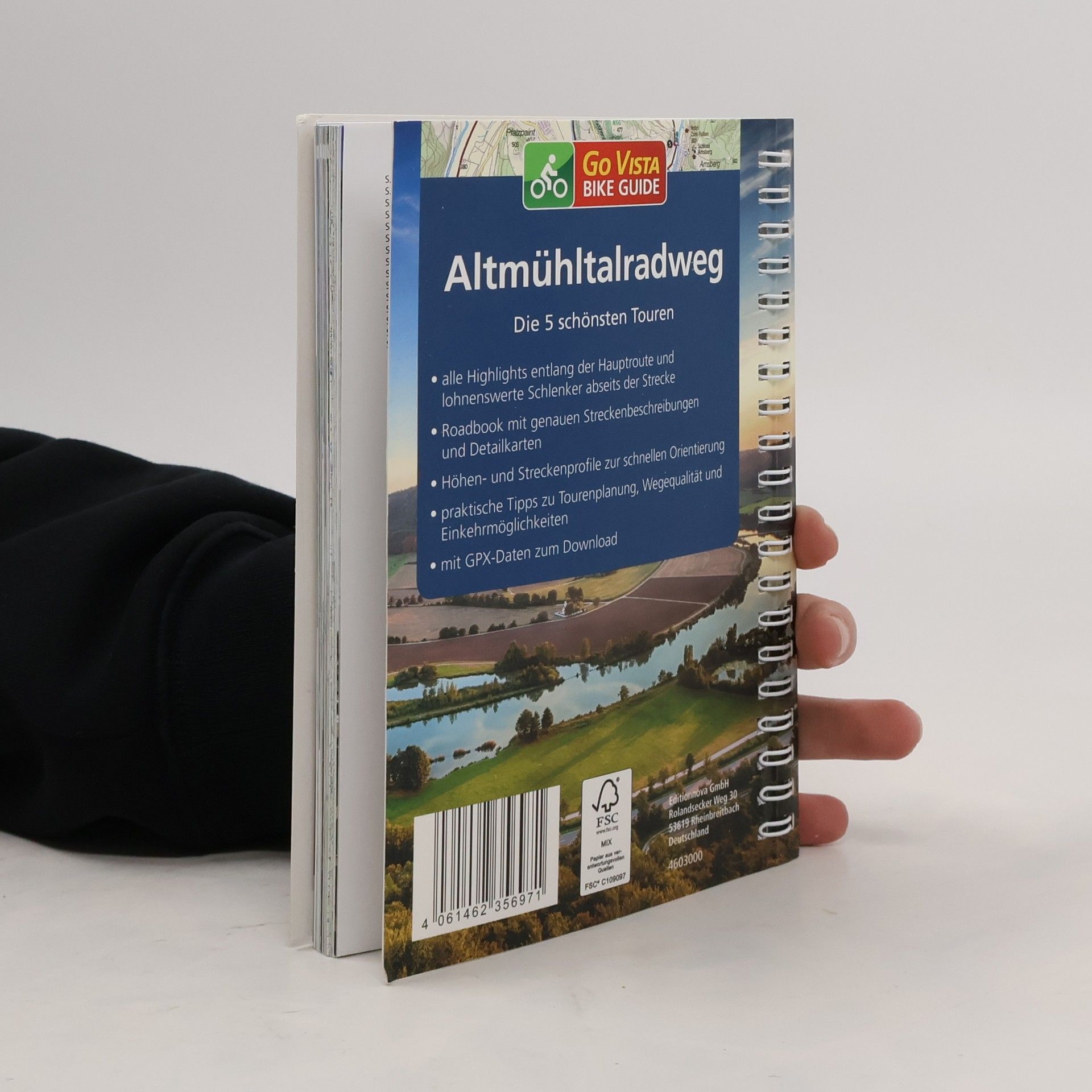 Der Altmühltalradweg führt 250 km von Rothenburg ob der Tauber über Eichstätt bis nach Kelheim an der Mündung der Altmühl in die Donau. Der Radreiseführer im Kompass-Verlag erschien zuletzt 2018 (ekz-Nr. 563.935.9). Die Neuauflage präsentiert einen neuen Autor und ein verändertes Konzept und Layout. Das gute Kartenmaterial wurde mit zahlreichen Hintergrundinformationen angereichert. In kurzen Texten erfährt man etwas über die Geschichte der Region, über "Highlights am Wegesrand und lohnenswerte Schlenker" sowie viele wissenswerte Fakten und praktische Hinweise. Der Band gliedert sich in allgemeine einleitende Informationen, den Reiseführer zur Vorbereitung der Reise und das Roadbook für die Fahrt selbst. Die letzten Seiten bieten wichtige Adressen. Zahlreiche Farbfotos machen den Band lebendig. Eine Extra-Tourenkarte ist in einer eingehefteten Plastiktasche. GPS-Tracks können zu jeder Tour heruntergeladen werden. Für Bibliotheken ist die offene Spiralbindung unpraktisch. Deshalb nach dem bikeline-Führer "Altmühl-Radweg" (eT 31/20). (2)