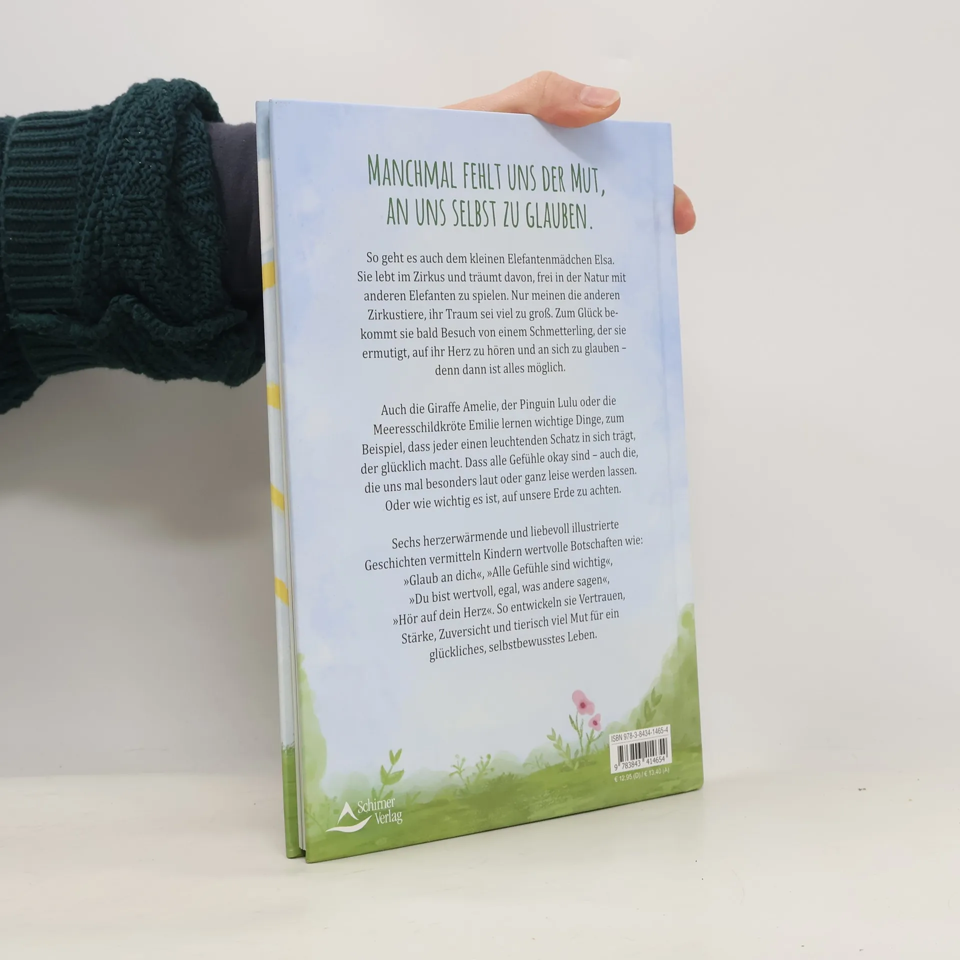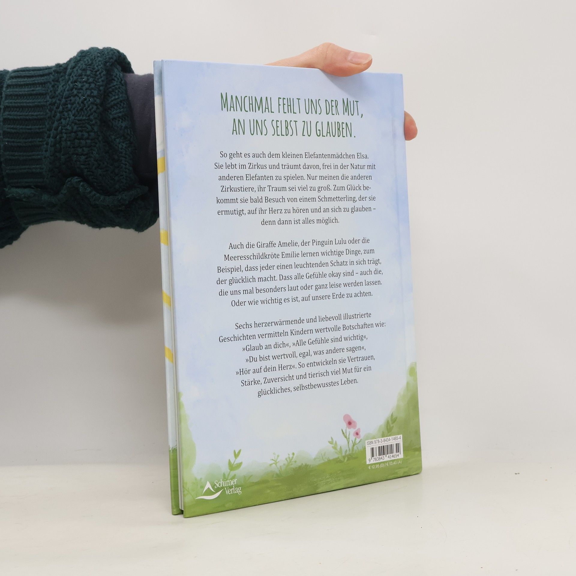 Manchmal fehlt uns der Mut, an uns selbst zu glauben. So geht es auch dem kleinen Elefantenmädchen Elsa. Sie lebt im Zirkus und träumt davon, frei in der Natur mit anderen Elefanten zu spielen. Nur meinen die anderen Zirkustiere, ihr Traum sei viel zu groß. Zum Glück bekommt sie bald Besuch von einem Schmetterling, der sie ermutigt, auf ihr Herz zu hören und an sich zu glauben – denn dann ist alles möglich. Auch die Giraffe Amelie, der Pinguin Lulu oder die Meeresschildkröte Emilie lernen wichtige Dinge, zum Beispiel, dass jeder einen leuchtenden Schatz in sich trägt, der glücklich macht. Dass alle Gefühle okay sind – auch die, die uns mal besonders laut oder ganz leise werden lassen. Oder wie wichtig es ist, auf unsere Erde zu achten. Sechs herzerwärmende und liebevoll illustrierte Geschichten vermitteln Kindern wertvolle Botschaften wie: »Glaub an dich«, »Alle Gefühle sind wichtig«, »Du bist wertvoll, egal, was andere sagen«, »Hör auf dein Herz«. So entwickeln sie Vertrauen, Stärke, Zuversicht und tierisch viel Mut für ein glückliches, selbstbewusstes Leben.