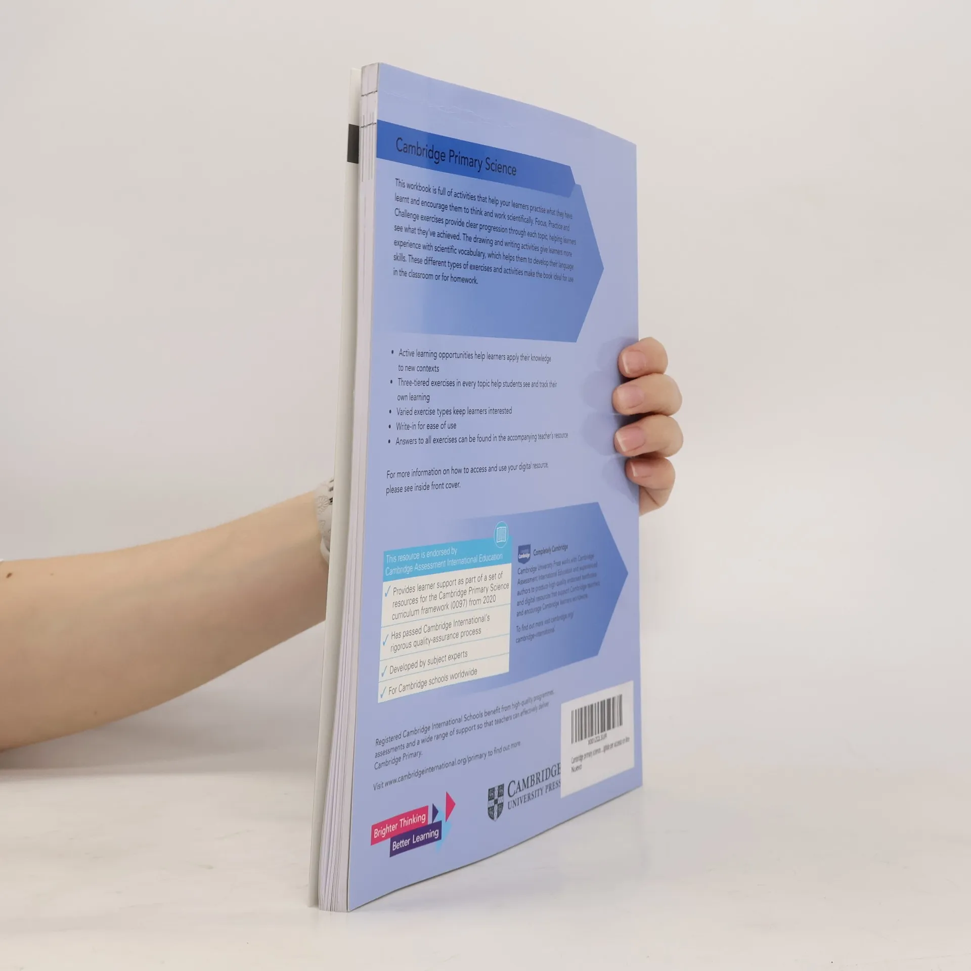 Discover our new resources for the Cambridge International Primary and Lower Secondary Curriculum Frameworks These workbooks are full of activities that help your learners practise what they have learnt and encourage them to think and work scientifically. Focus, Practice and Challenge exercises provide clear progression through each topic, helping learners see what they've achieved. The drawing and writing activities give learners more experience with scientific vocabulary, which helps them to develop their language skills. These different types of exercises and activities make the book ideal for use in the classroom or for homework.