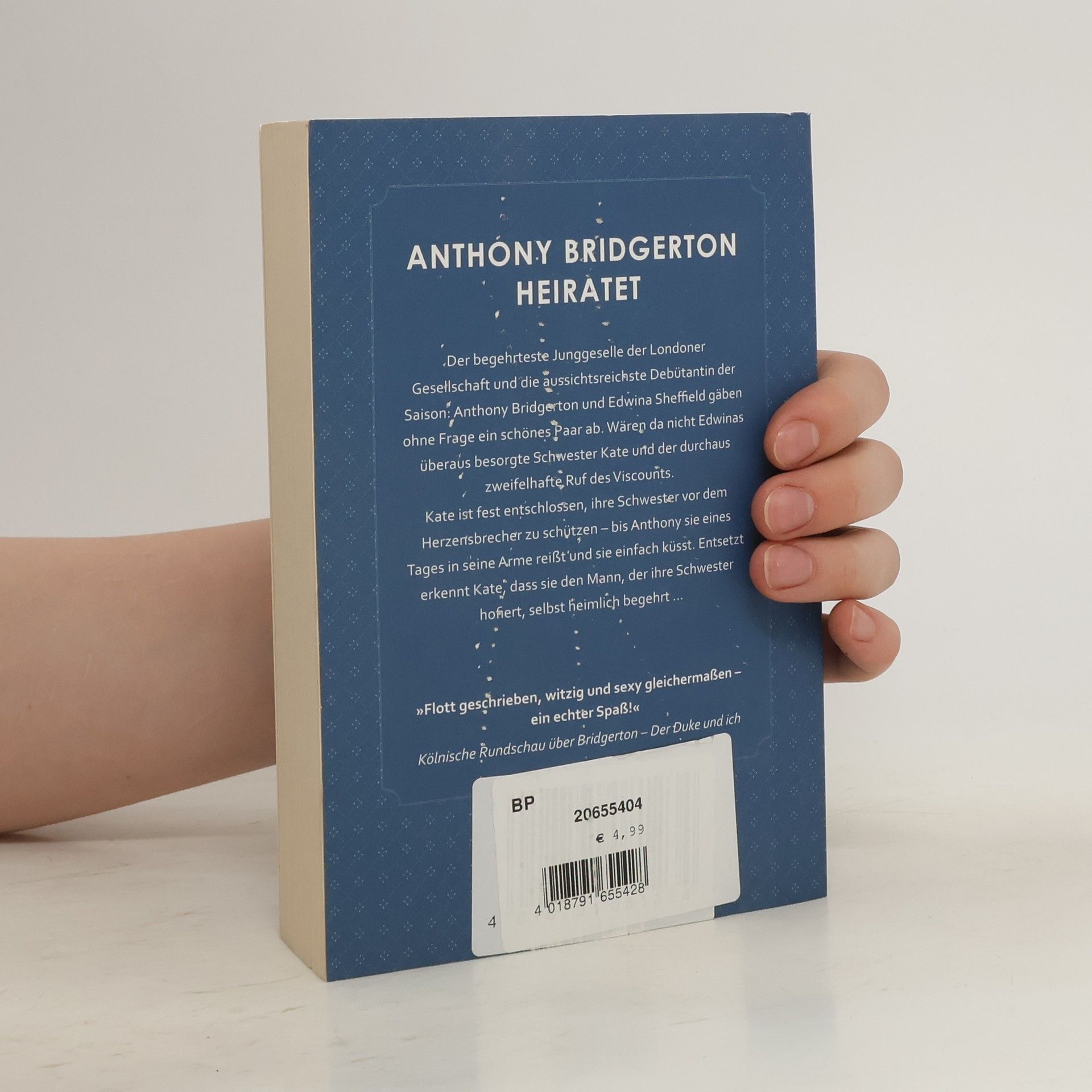 Anthony Bridgerton heiratet Der begehrteste Junggeselle der Londoner Gesellschaft und die aussichtsreichste Debütantin der Saison: Lord Anthony Bridgerton und Edwina Sheffield gäben ohne Frage ein schönes Paar ab. Wären da nicht Edwinas überaus besorgte Schwester Kate und der durchaus zweifelhafte Ruf des Lords. Kate ist fest entschlossen, ihre Schwester vor dem Herzensbrecher zu schützen – bis der Viscount sie eines Tages in seine Arme reißt und sie einfach küsst. Entsetzt erkennt Kate, dass sie den Mann, der ihre Schwester hofiert, selbst heimlich begehrt … »Wahrhaft die Jane Austen der Gegenwart.« Bestsellerautorin Jill Barnett
