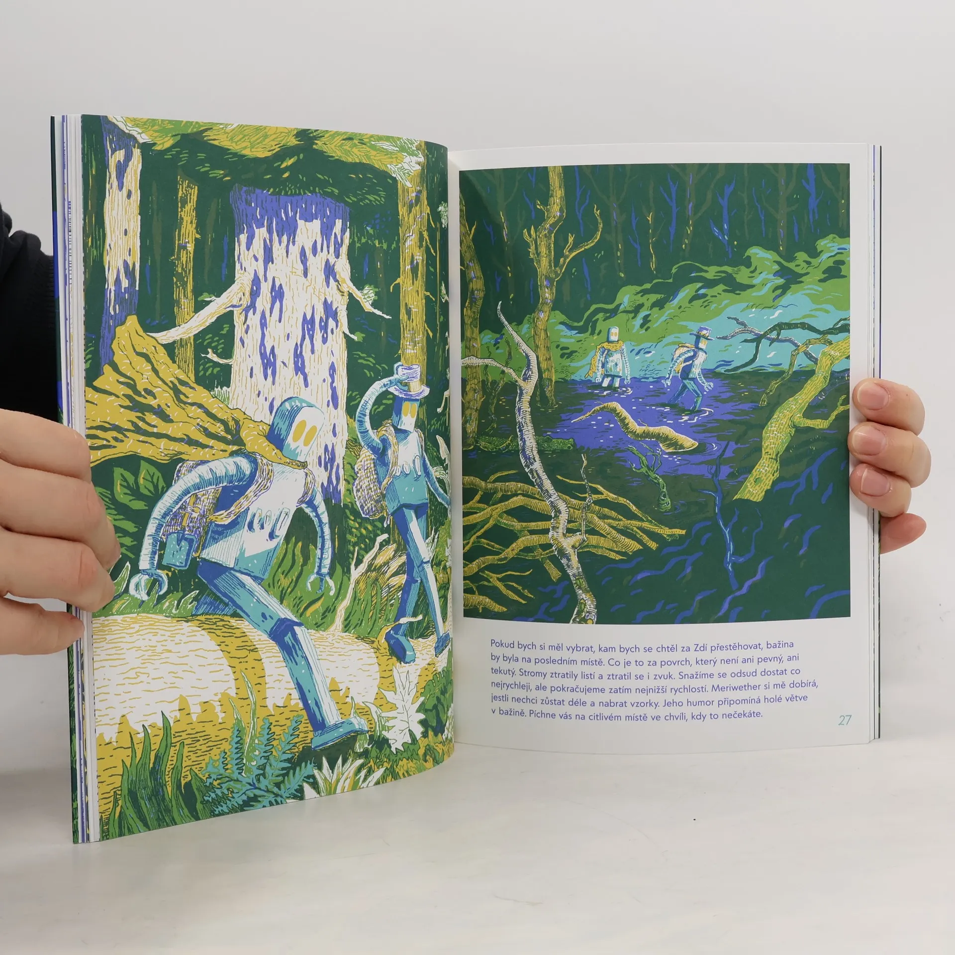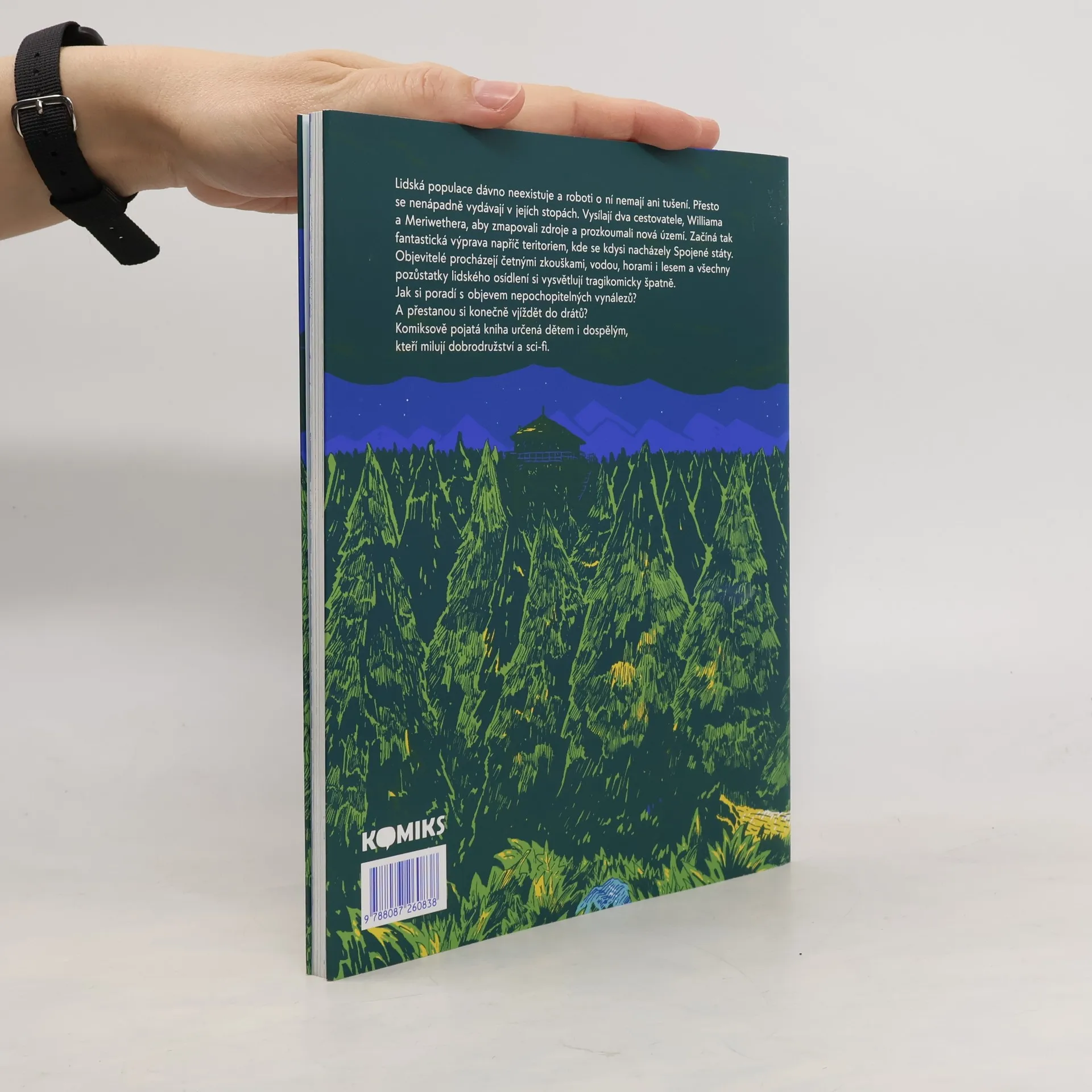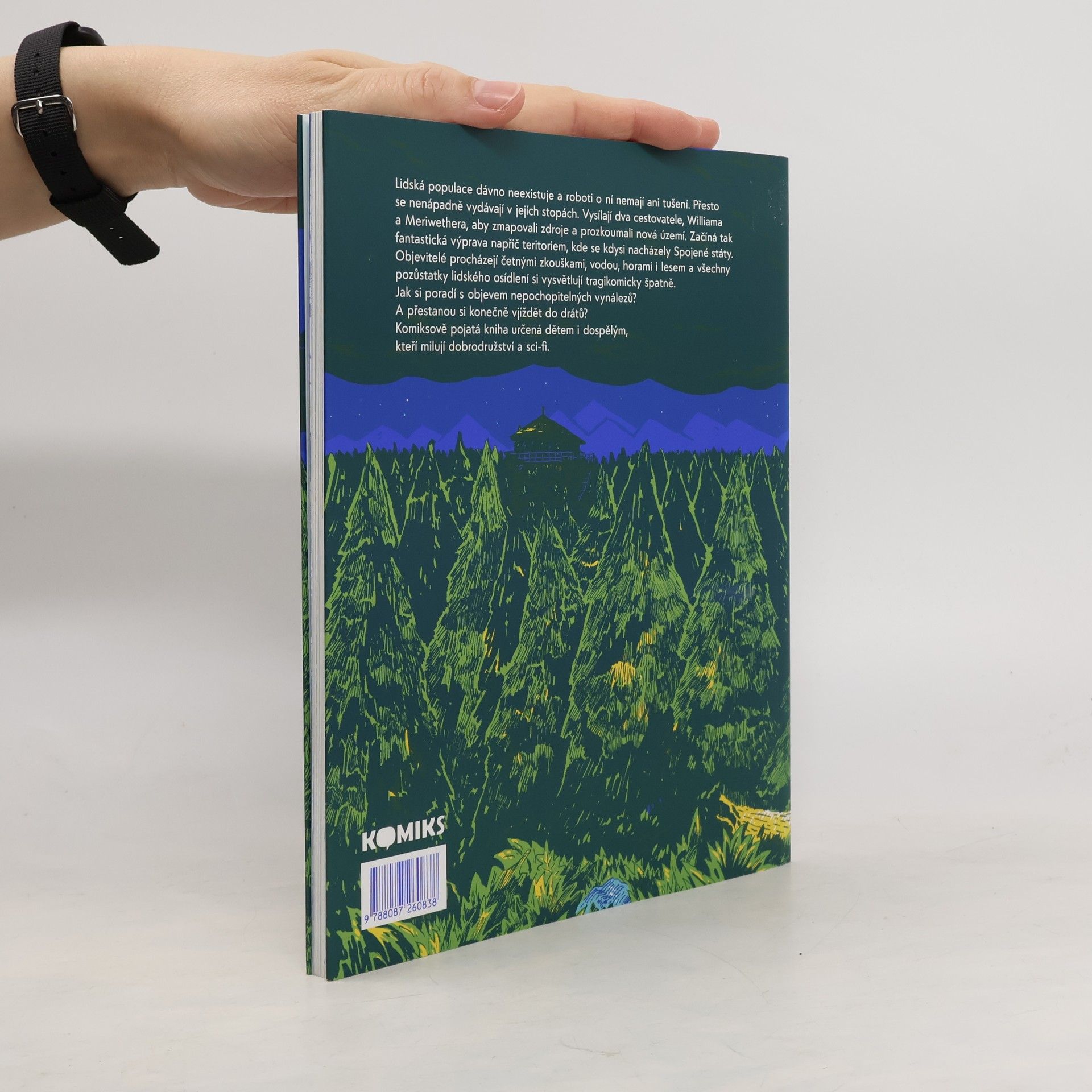 Lidská populace dávno neexistuje a roboti o ní nemají ani tušení. Přesto se nenápadně vydávají v jejích stopách. Vysílají dva cestovatele, Williama a Meriwethera, aby zmapovali zdroje a prozkoumali nová území. Začíná tak fantastická výprava napříč teritoriem, kde se kdysi nacházely Spojené státy. Objevitelé procházejí četnými zkouškami, vodou, horami i lesem a všechny pozůstatky lidského osídlení si vysvětlují tragikomicky špatně. Jak si poradí s objevem nepochopitelných vynálezů? A přestanou si konečně vjíždět do drátů? Komiksově pojatá kniha určená dětem i dospělým, kteří milují humor, dobrodružství a sci-fi.