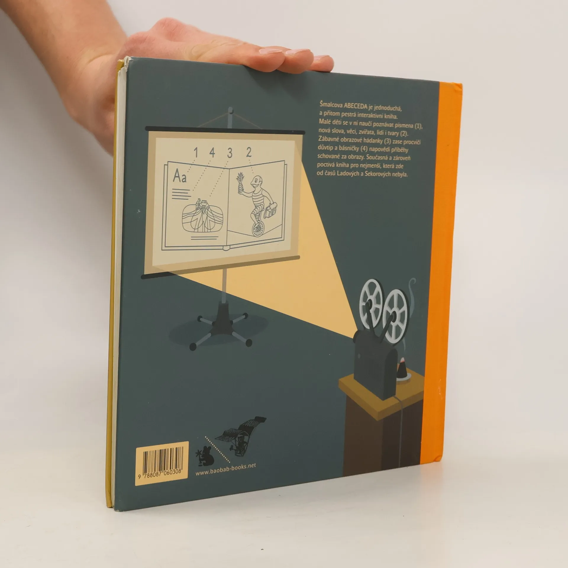 Poznávat roztodivný svět skrze Abecedu se děti učily odedávna. Sekorovy štafličky coby A a Bábu břichatou si při psaní velkých liter nejeden z nás vybaví. Petr Šmalec nám konečně nabízí novou verzi. Děti se formou zábavné a nikdy nekončící hry naučí nová slova i nové situace. Obrazové tabule dávají prostor imaginaci malým čtenářům, pro která se písmena mají stát novým světem i otázkám asistujících rodičů. Hádanky na každé stránce rozvádějí či doplňují příběhy, které autor rozehrává v obrazech. Básně současných mladých básníků nejen ilustrují po svém, ale zároveň nabízejí dítěti první dotek "opravdové poezie". Pro děti od čtyř let.