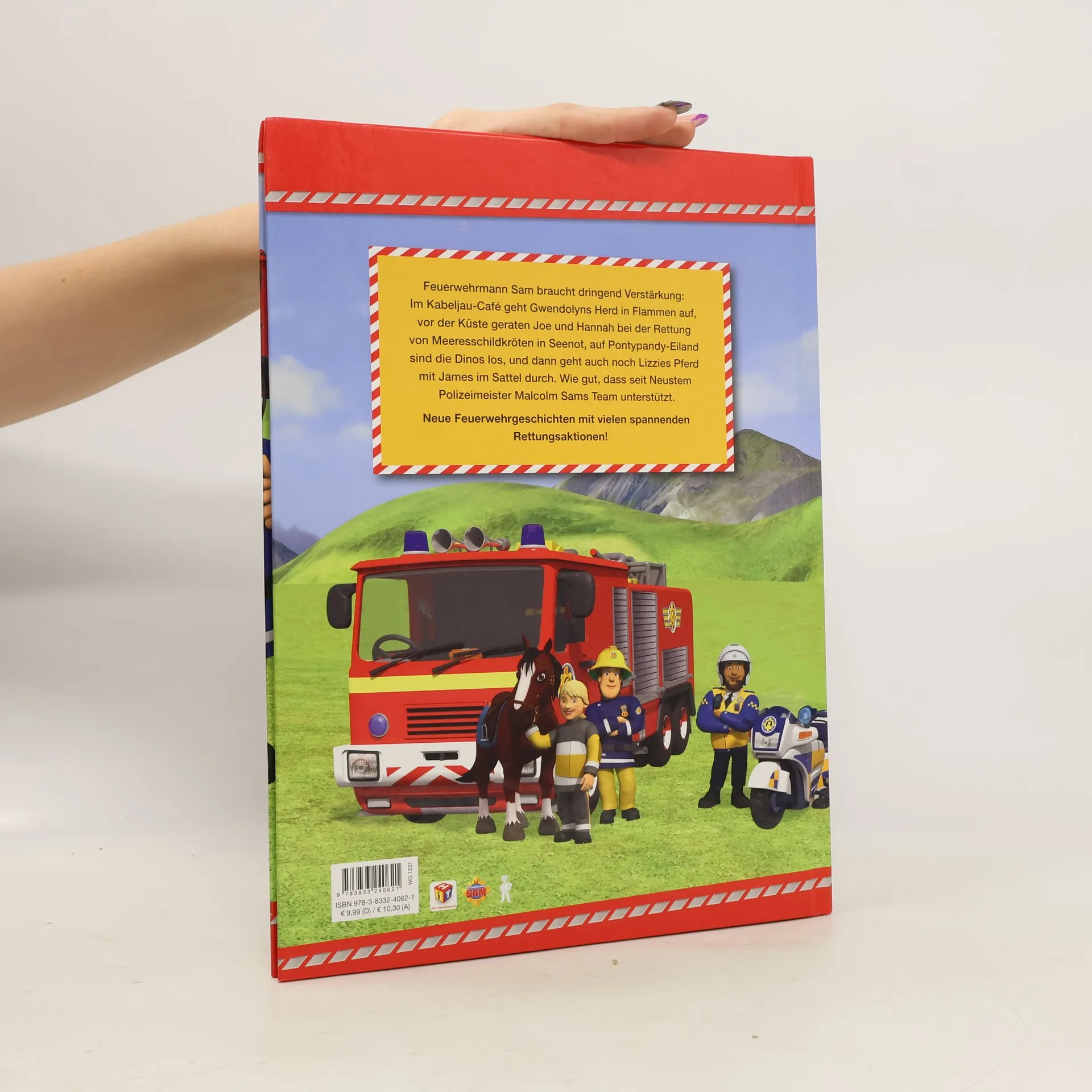 Feuerwehrmann Sam bracht dringend Verstärkung: Im Kabeljau-Café geht Gwendolyns Herd in Flammen auf, vor der Küste geraten Joe und Hannah bei der Rettung von Meeresschildkröten in Seenot, auf Pontypandy-Eiland sind die Dinos los, und dann geht auch noch Lizzies Pferd mit James im Sattel durch. Wie gut, dass seit Neuestem Polizeimeister Malcolm Sams Team unterstützt. Neue Feuerwehrgeschichten mit vielen spannenden Rettungsaktionen!