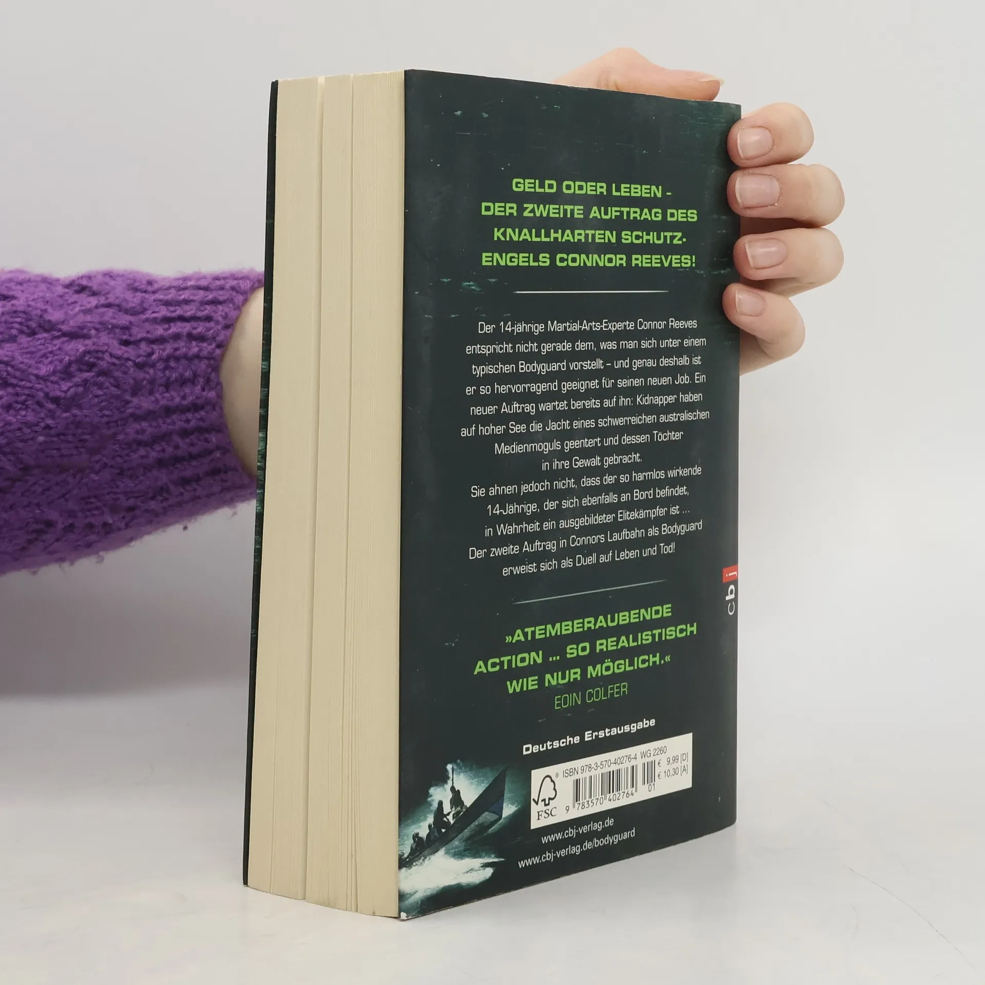 Geld oder Leben - der zweite Auftrag des knallharten Schutzengels Connor Reeves! Kidnapper haben auf hoher See die Jacht eines schwerreichen australischen Medienmoguls geentert und dessen Töchter in ihre Gewalt gebracht. Nun wollen sie ein Lösegeld in Millionenhöhe erpressen. Sie ahnen jedoch nicht, dass der so harmlos wirkende 14-Jährige, der sich ebenfalls an Bord befindet, in Wahrheit ein ausgebildeter Elitekämpfer ist. Plötzlich haben sie ein Problem. Denn Connor Reeves hat nicht die Absicht, klein beizugeben. Der zweite Auftrag in seiner Laufbahn als Bodyguard erweist sich als Duell auf Leben und Tod ... Erfolgsgarant Chris Bradford liefert mit „Bodyguard“ kugelsichere Action kombiniert mit explosiven Showdowns.