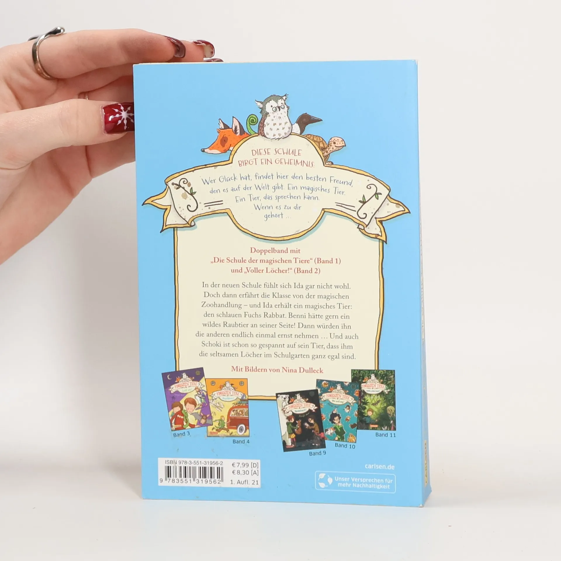Diese Schule brigt ein Geheimnis: Wer Glück hat, findet hier den besten Freund, den es auf der Welt gibt. Ein magisches Tier. Ein Tier, das sprechen kann, wenn es zu dir gehört ... In der neuen Schule fühlt sich Ida gar nicht wohl. Doch dann erfährt die Klasse von der magischen Zoohandlung – und Ida erhält ein magisches Tier: den hilfsbereiten Fuchs Rabbat. Benni hätte gern ein wildes Raubtier an seiner Seite! Dann würden ihn die anderen endlich einmal ernst nehmen. Und auch Schoki ist schon so gespannt auf sein Tier, dass ihm die seltsamen Löcher im Schulgarten ganz egal sind. Zwei turbulente Abenteuer in einem Doppelband!